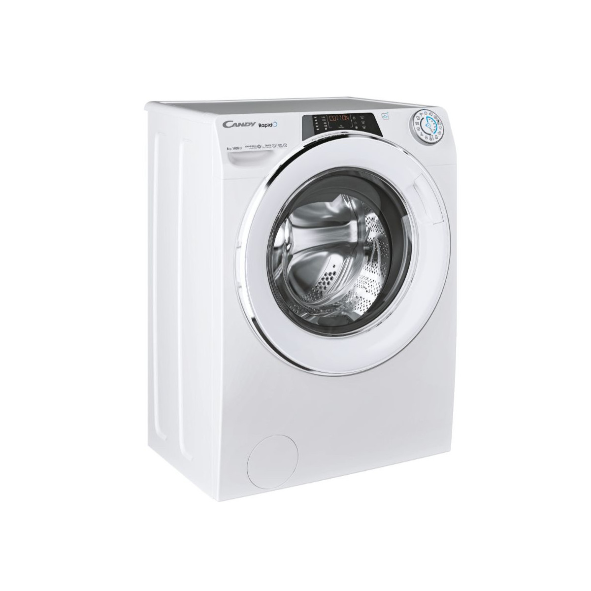 Candy RapidÓ RO1486DWMCT/1-S. Tipo di carica: Caricamento frontale. Capacità cestello: 8 kg, Classe di efficienza della centrifuga: B, Silenziosità (centrifuga): 76 dB, Velocità di centrifuga massima: 1400 Giri/min. Colore del prodotto: Bianco. Larghezza: 600 mm, Profondità: 530 mm, Altezza: 850 mm. Classe efficienza energetica: A