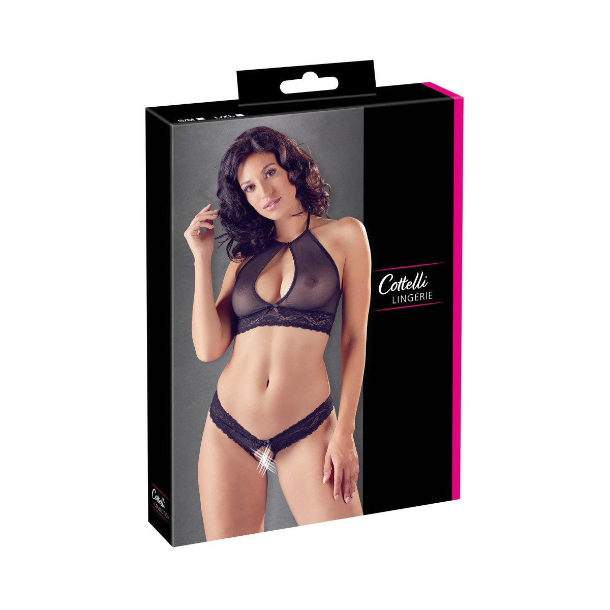 Cottelli Lingerie Barlette - Completino Intimo Nero Trasparente, Vagina Scoperta, Taglia S-M
