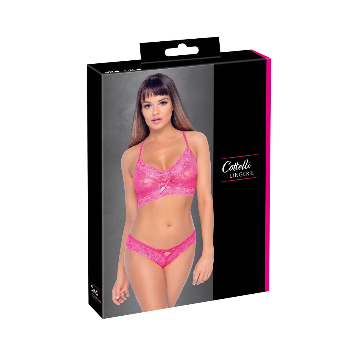 Cottelli Lingerie Pink Elodie - Completino Intimo Pink In Pizzo, Taglia S-M