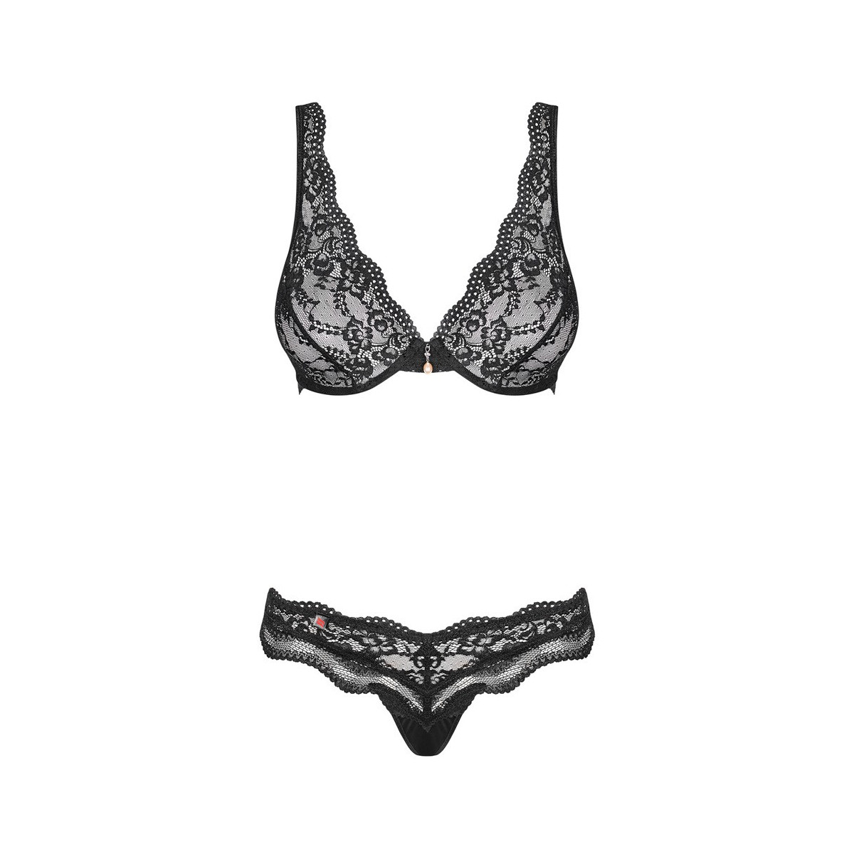 Obsessive Crystal - Completino Intimo Nero In Pizzo, Taglia S-M
