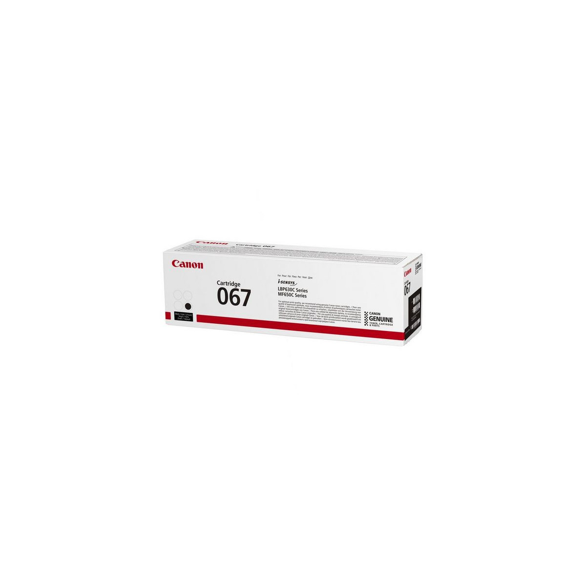 Utiliza el cartucho de tóner negro 067 con tu impresora láser compatible para que tus impresiones siempre queden perfectas. Un cartucho completo ofrece unas 1350 páginas (ISO/IEC 19798), lo que proporciona la vida útil necesaria para afrontar todas tus necesidades de impresión.