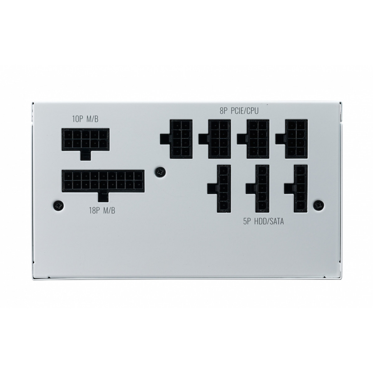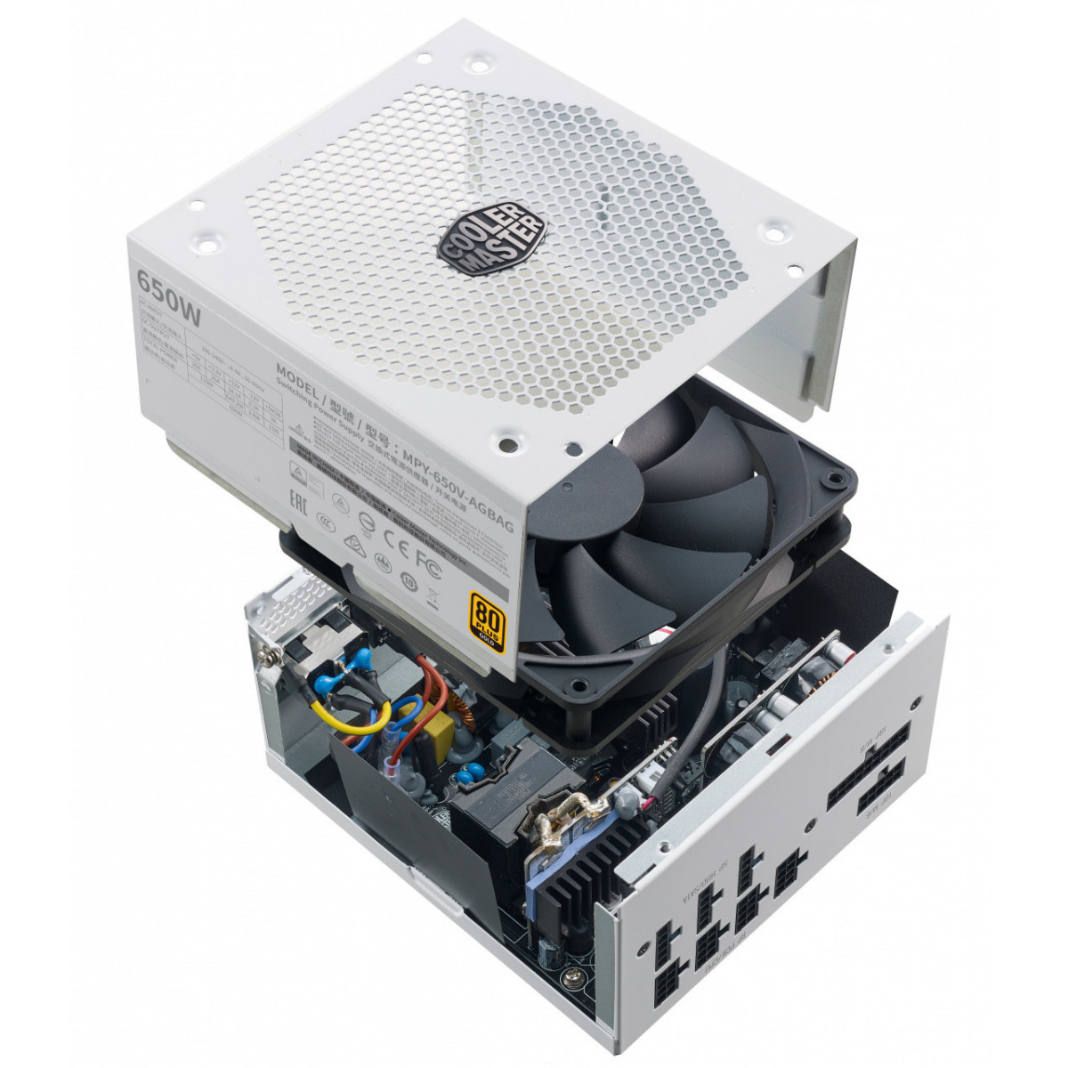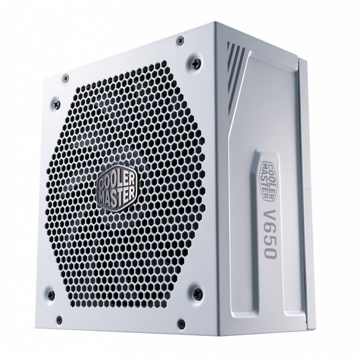 Cooler Master V650 Gold-V2 White Edition. Potenza totale: 650 W, Tensione di ingresso AC: 100 - 240 V, Frequenza di ingresso AC: 50/60 Hz. Connettore scheda madre: 24-pin ATX, Tipo di cablaggio: Modulare. Utilizzo: PC, Fattore di forma dell'unità di alimentazione (PSU): ATX, Certificazione 80 PLUS: 80 PLUS Gold. Colore del prodotto: Bianco, Tipo di raffreddamento: Attivo, Diametro del ventilatore: 13,5 cm. Larghezza: 150 mm, Profondità: 160 mm, Altezza: 86 mm