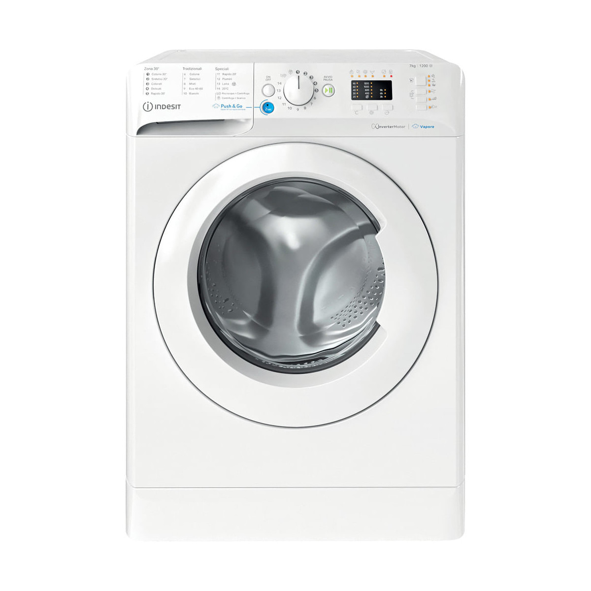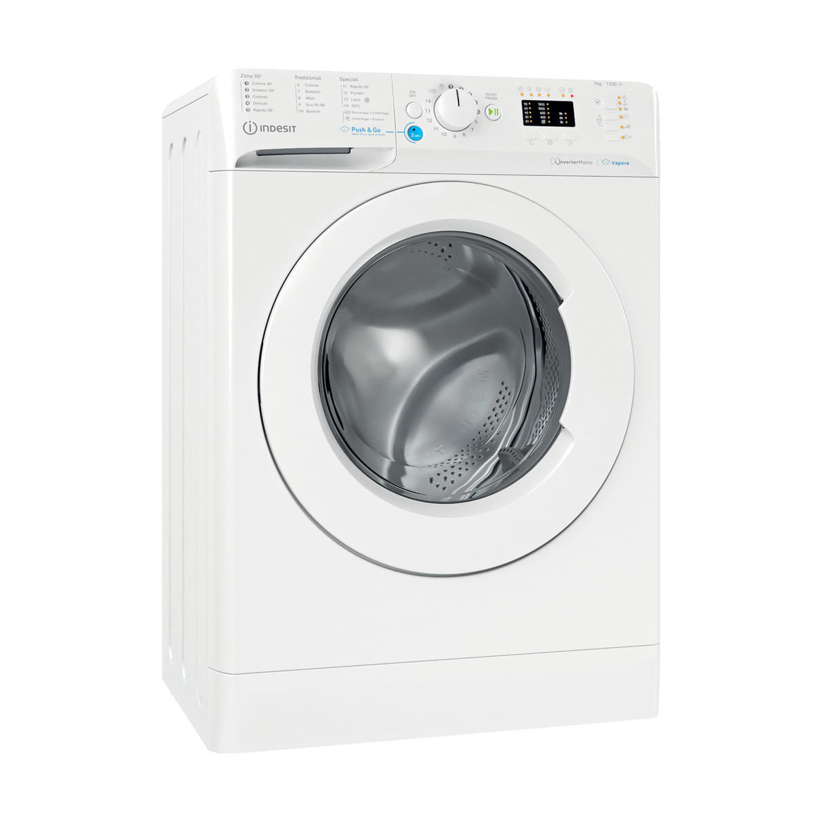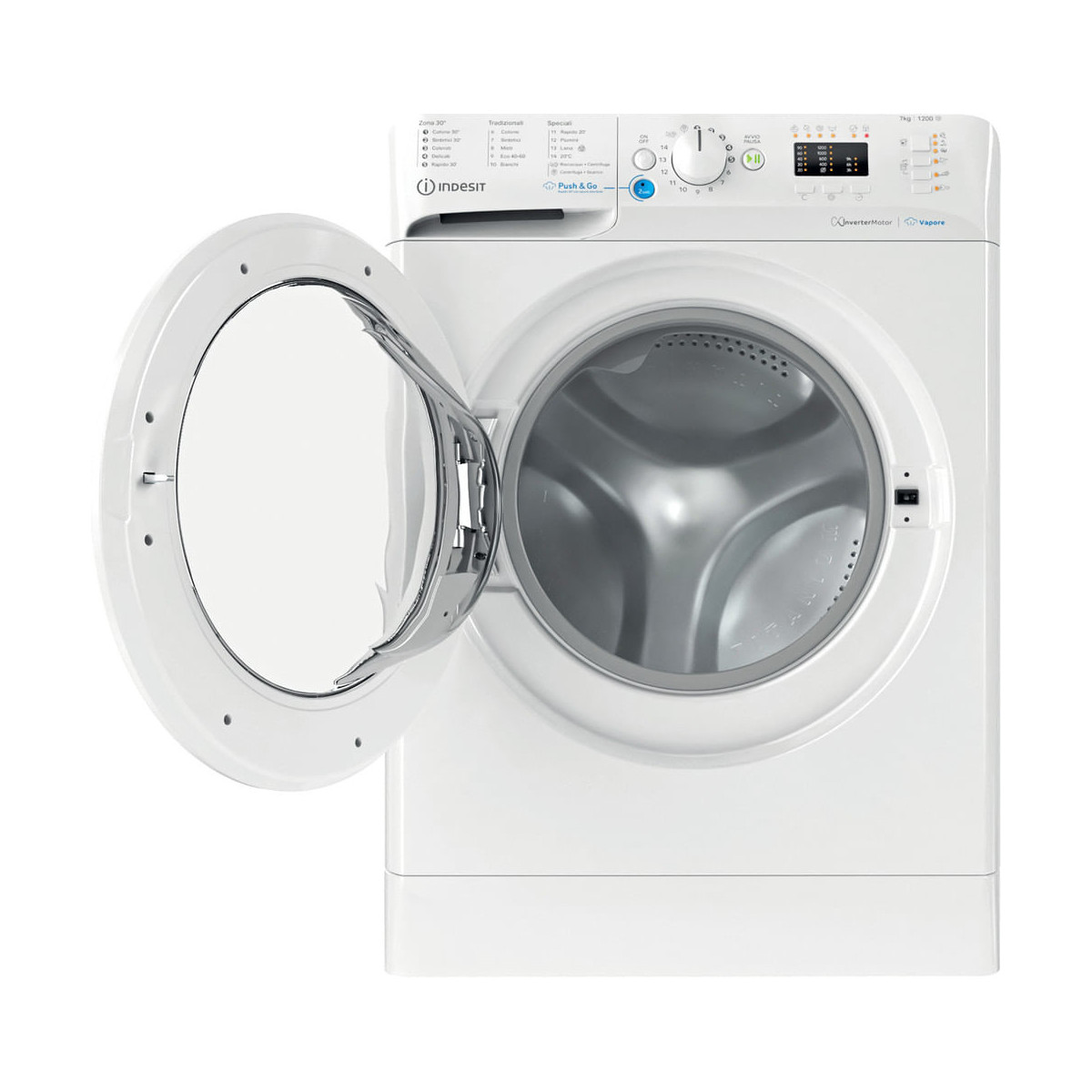 Caratteristiche di questa lavatrice a carica frontale a libera installazione Indesit: cestello spazioso da 7,0 kg. Classe energetica B. Centrifuga a 1200 giri al minuto, rapida ed efficiente. Colore bianco.