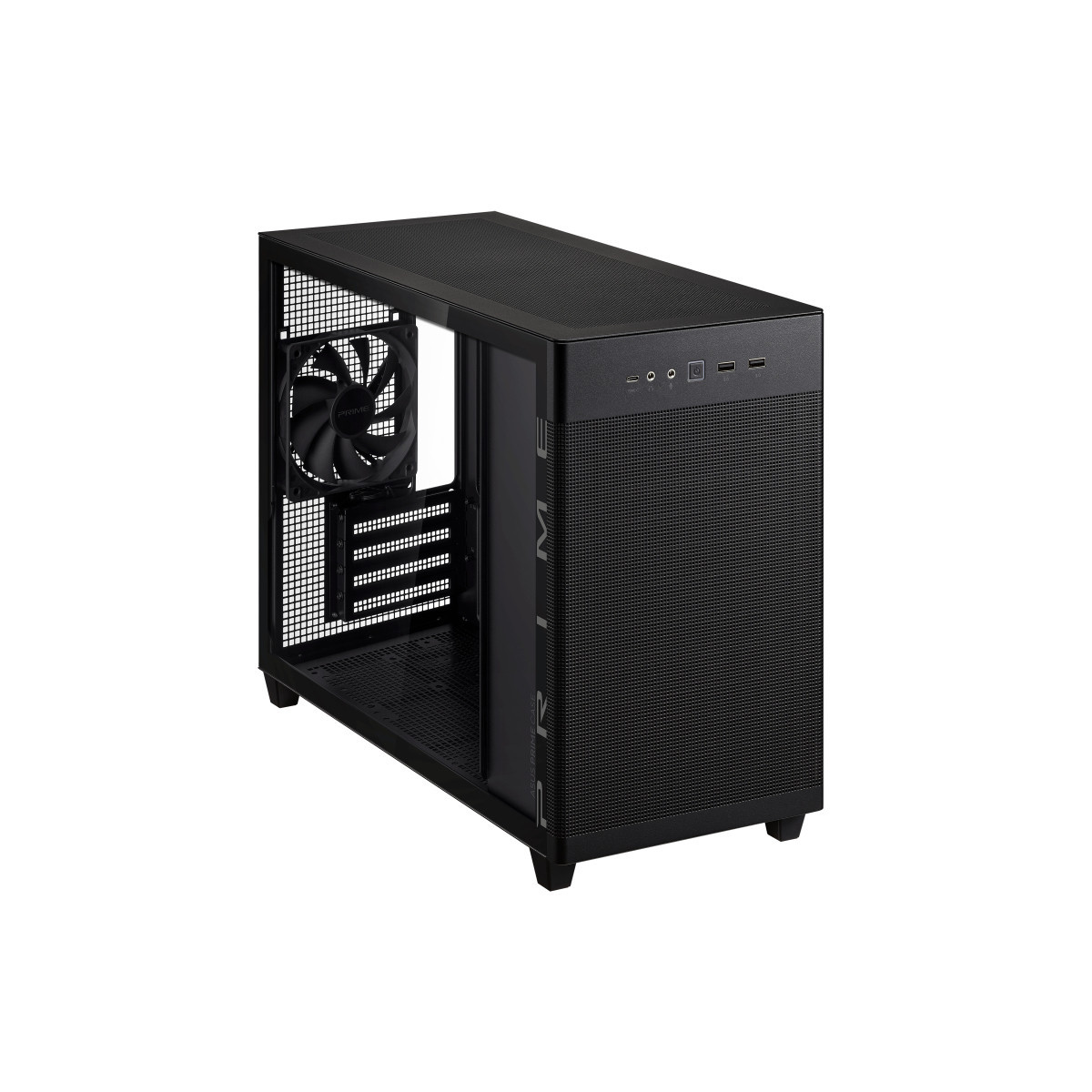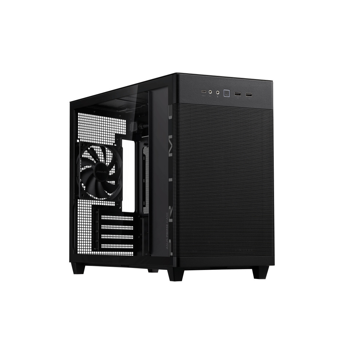 ASUS AP201 PRIME CASE TG. Fattore di forma: Mini Tower, Tipo: PC, Colore del prodotto: Nero. Rear fans installed: 1x 120 mm, Diametro delle ventole posteriori supportato: 120 mm, Diametri delle ventole superiori supportati: 120,140 mm. Dimensioni di hard disk drive supportati: 2.5,3.5". Larghezza: 205 mm, Profondità: 350 mm, Altezza: 460 mm