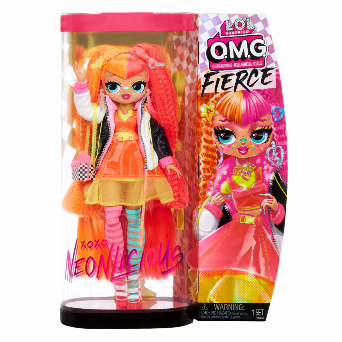 L.O.L. Surprise! 707 OMG Fierce Dolls - Neonlicious. Tipo di bambola: Bambola alla moda, Genere della bambola: Femmina, Età consigliata (min): 4 anno/i, Genere consigliato: Bambino/Bambina. Altezza: 290 mm. Materiali: Plastica, Tessile, Colore del prodotto: Multicolore