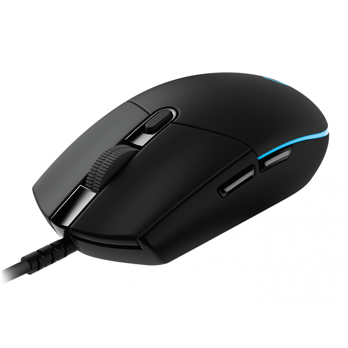 Logitech G PRO. Fattore di forma: Ambidestro. Tecnologia di rilevamento del movimento: Ottico, Interfaccia dispositivo: USB tipo A, Risoluzione movimento: 16000 DPI, Tempo di risposta: 1 ms, Tipo di pulsanti: Tasti premuti, Numero di tasti: 6, Tipo di scorimmento: Rotella, Accelerazione (max): 40 G. colore d'illuminazione: Multi. Alimentazione: Cavo. Colore del prodotto: Nero