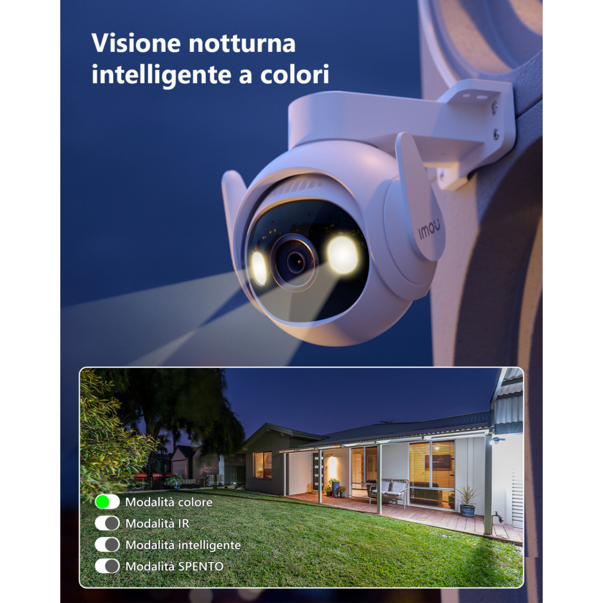 2. Visione notturna a colori: quando fa buio, la telecamera attiva i riflettori integrati per le immagini a colori.