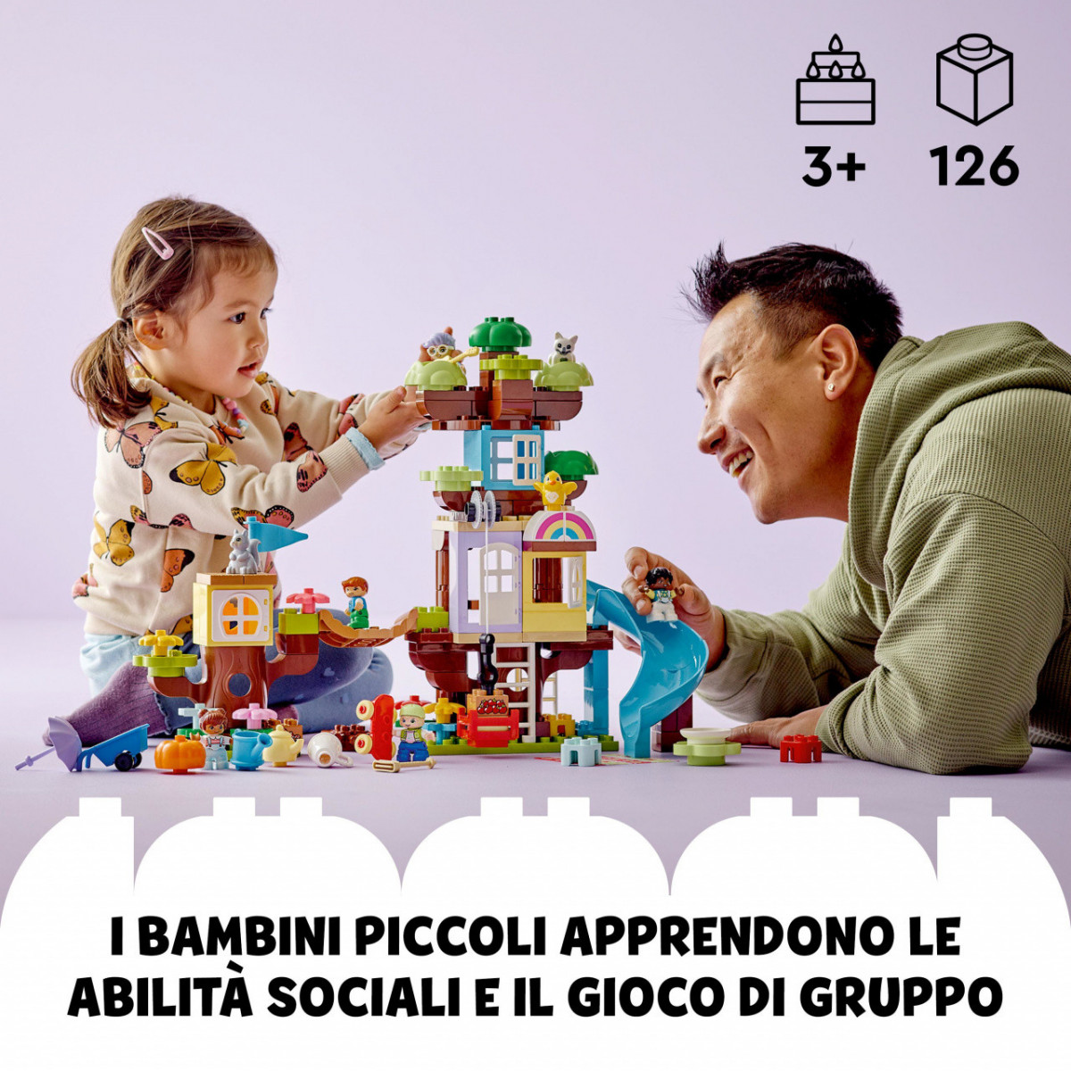 I piccoli avventurieri di 3+ anni scopriranno tantissimi modi per divertirsi esplorando la Casa sull’albero 3 in 1 LEGO DUPLO (10933). Questo set è ricco di funzioni da scoprire e può essere ricostruito in 3 modi diversi per tanto divertimento creativo.