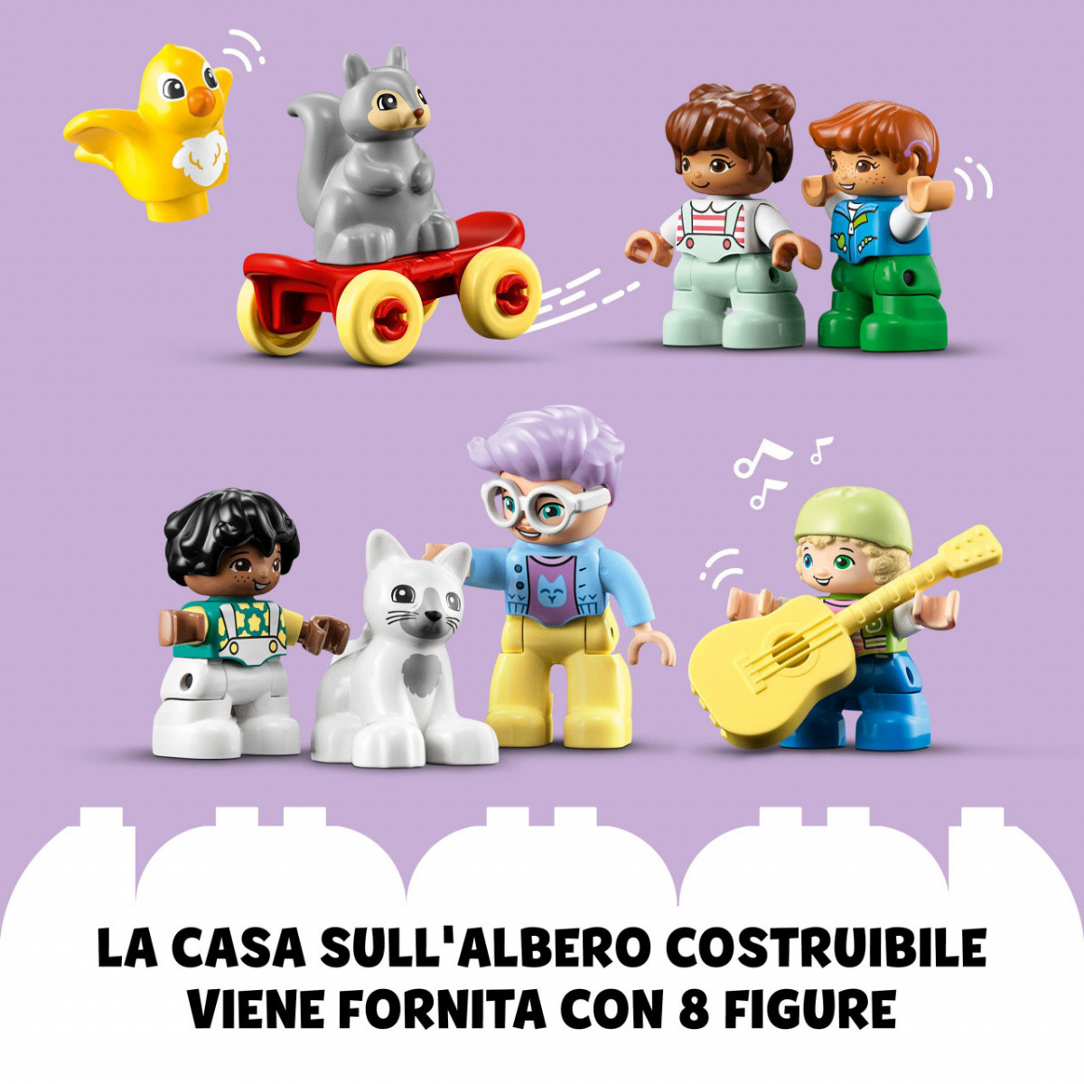 Questo set contiene una vasta gamma di personaggi - tra cui una nonna, 4 bambini, un uccello, un gatto e uno scoiattolo - che consente ai genitori di giocare insieme ai loro bambini, insegnando loro le competenze sociali e il gioco di gruppo. Con tanti accessori creativi, i piccoli costruttori possono esplorare l’espressione di sé inventando storie illimitate e fantasiose.