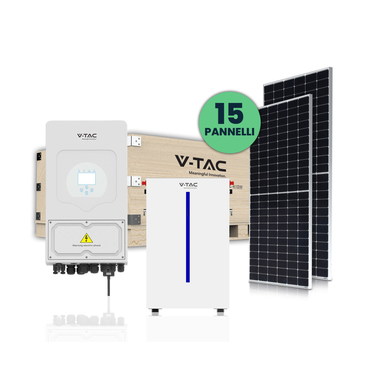 KIT Fotovoltaico 6KW con Batteria di Accumulo al Litio 6.14 KWh e Inverter Monofase Ibrido con Accessori inclusi e 15 Pannelli