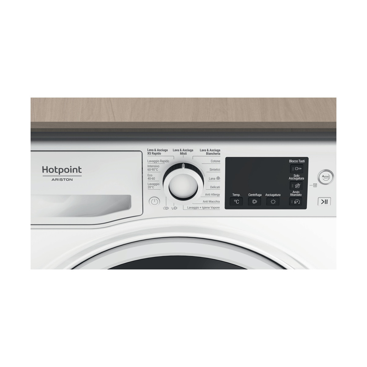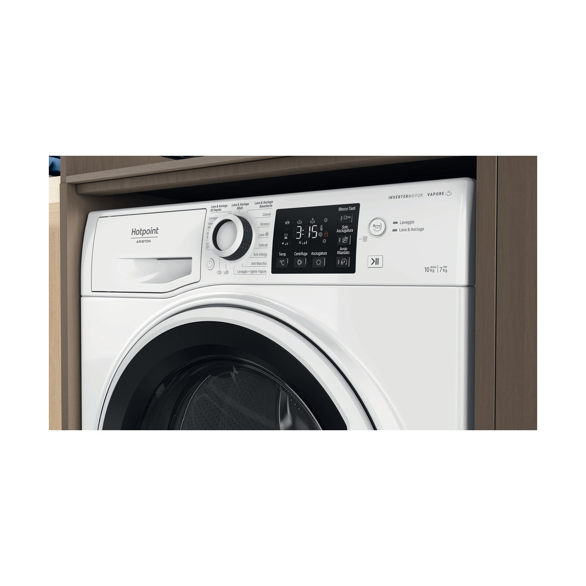 Hotpoint NDB 10736 WA IT. Tipo di carica: Caricamento frontale, Posizionamento dell'apparecchio: Libera installazione, Colore del prodotto: Bianco. Capacità di asciugatura: 7 kg, Velocità di centrifuga massima: 1400 Giri/min, Classe di efficienza della centrifuga: B. Classe di efficienza energetica (lavaggio): A, Classe di efficienza energetica( lavaggio e asciugatura): D, Consumo di acqua (lavaggio): 52 L. Profondità: 605 mm, Larghezza: 595 mm, Altezza: 850 mm. Tipo di regolazione dei piedi: Anteriore e posteriore