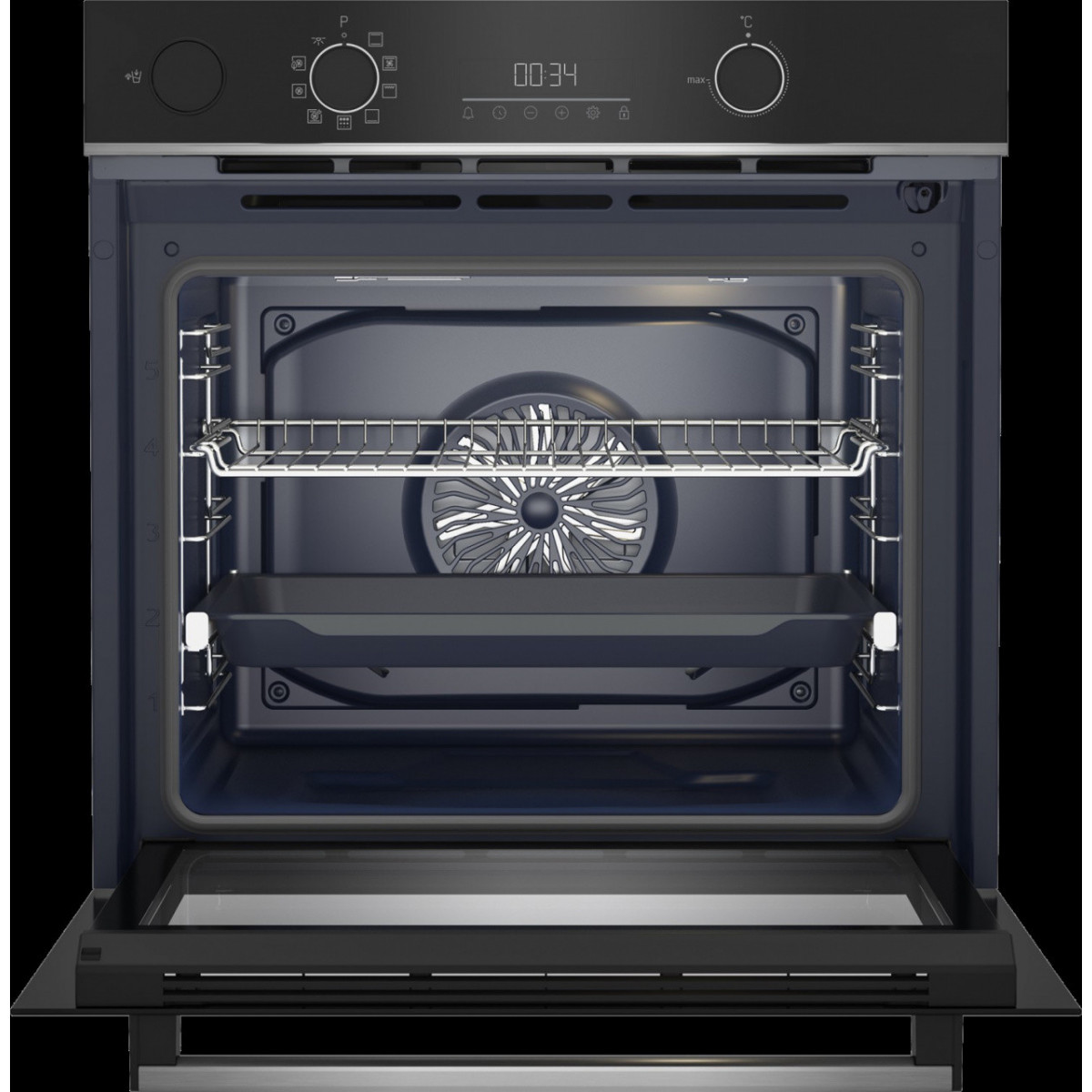 Beko BBIS13300XPE. Dimensione del forno: Media, Tipo di forno: Forno elettrico, Capacità interna forno totale: 71 L. Posizionamento dell'apparecchio: Da incasso, Colore del prodotto: Nero, Acciaio inossidabile, Tipo di controllo: Manopola, Touch. Classe efficienza energetica: A+, Consumo energetico (convenzionale): 0,95 kWh, Consumo energetico (convezione forzata): 0,69 kWh. Quantità lampade: 1 lampada(e), Tipo di lampada: Alogena. Larghezza del compartimento: 56 cm, Profondità del compartimento: 55 cm, Altezza del compartimento: 59 cm