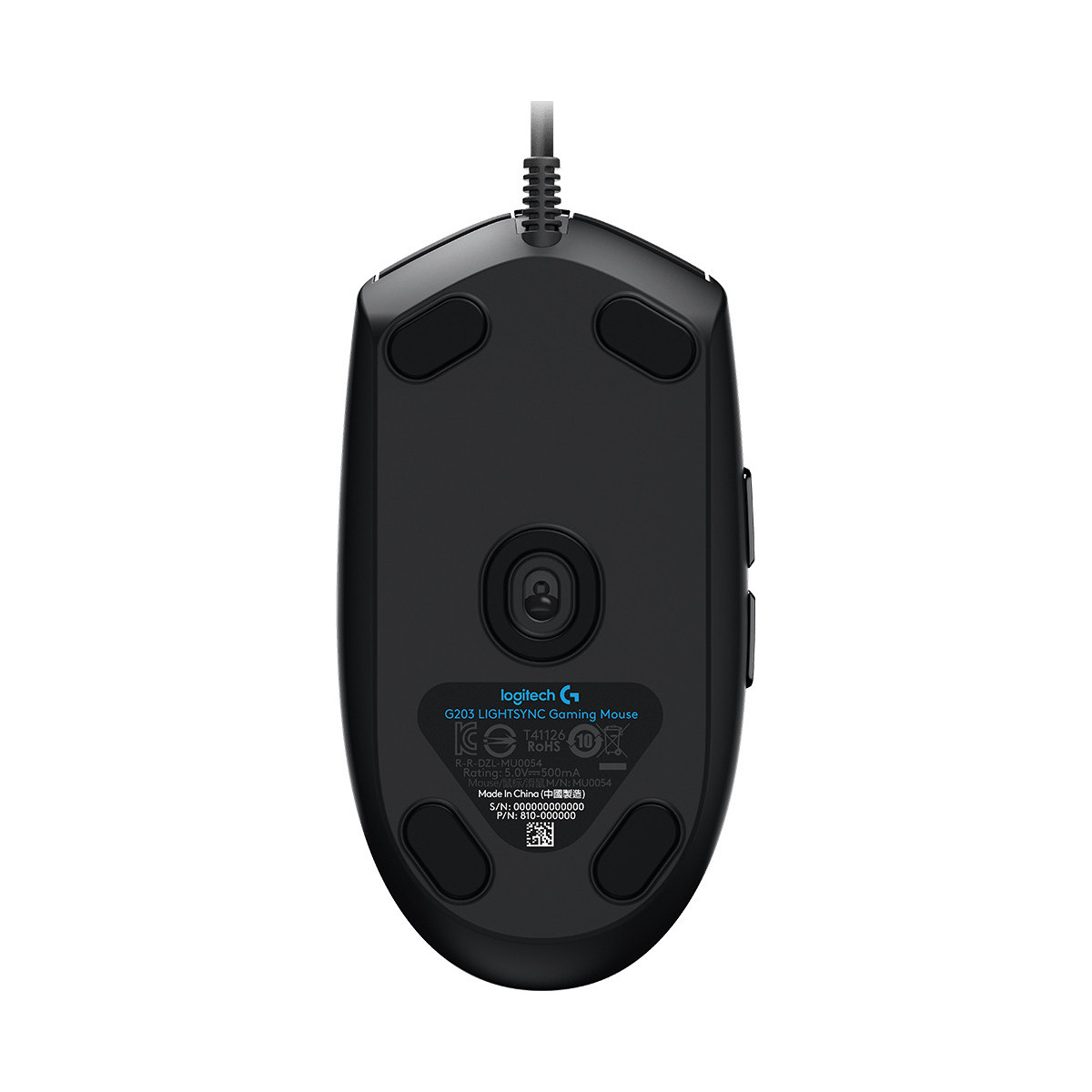 Logitech G G203 LightSync. Interfaccia dispositivo: USB tipo A, Risoluzione movimento: 8000 DPI, Tempo di risposta: 1 ms, Tipo di pulsanti: Tasti premuti, Numero di tasti: 6, Tipo di scorimmento: Rotella. colore d'illuminazione: Rosso/Verde/Blu. Alimentazione: Cavo. Colore del prodotto: Nero