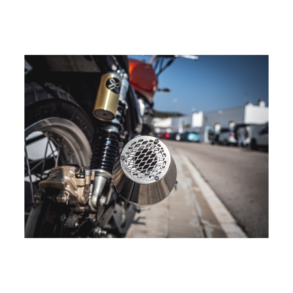 Trasformazione Cafè Racer, non è incluso il Raccordo Terminale della serie Ultracone,realizzato in acciaio inox 304 satinato a mano, fondello conico con griglia sportiva Montaggio: Trattasi di un kit universale, nato per le trasformazioni e customizzazioni e pertanto privo di Raccordo o staffaggi, è necessario apportare modifiche importanti al collettore per l'installazione