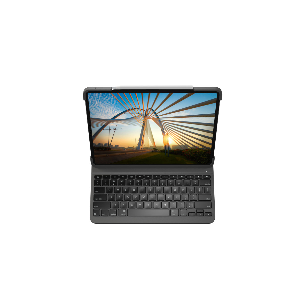 Logitech Slim Folio Pro. Struttura tastiera: QWERTZ, Linguaggio tastiera: Tedesco, Passo del tasto: 1,9 cm. Compatibilità marca: Apple, Compatibilità: iPad Pro 12.9-inch (3rd generation) (Model: A1876, A1895, A1983, A2014) iPad Pro 12.9-inch (4th..., Colore del prodotto: Grafite. Tecnologia di connessione: Senza fili, Interfaccia dispositivo: Bluetooth. Alimentazione: Batteria, Tipo batteria: Batteria integrata, Tecnologia batteria: Litio. Larghezza: 287 mm, Profondità: 22,5 mm, Altezza: 230 mm