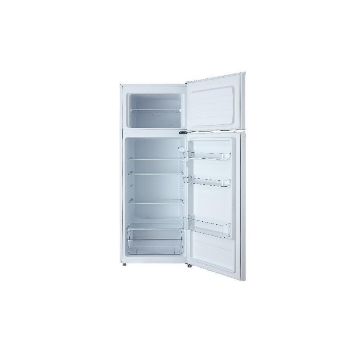 Comfeè RCT284DS1. Capacità netta totale: 204 L, Classe climatica: N-ST, Emissione acustica: 40 dB. Capacità netta frigorifero: 163 L, Luce interna, Numero di ripiani frigorifero: 4, Numero di cassetti per verdura: 1. Capacità netta congelatore: 41 L, Capacità di congelamento: 2 kg/24h. Classe efficienza energetica: F. Colore del prodotto: Argento