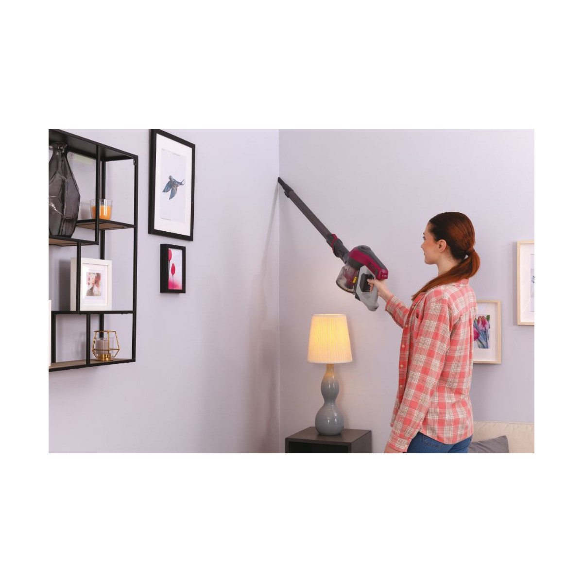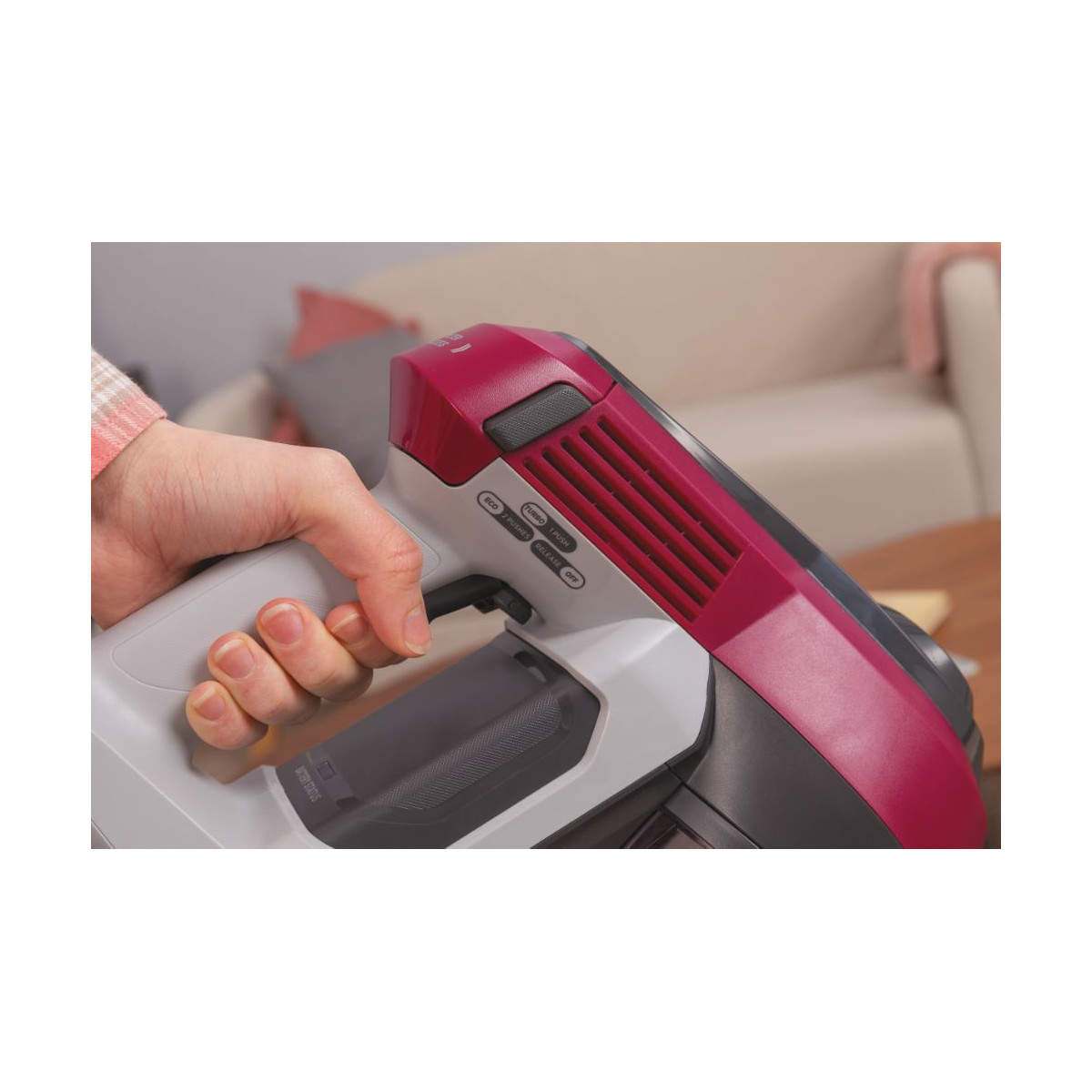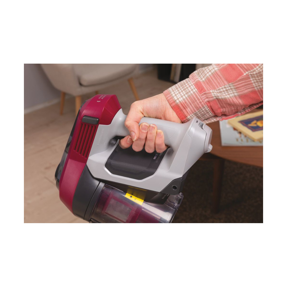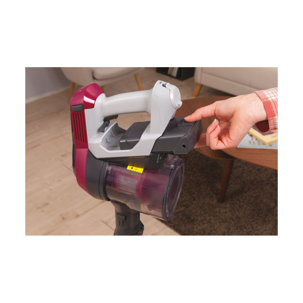 Hoover HF1 HF110P 011. Tipo di contenitore della polvere: Senza sacchetto, Colore del prodotto: Magenta, Capacità del contenitore: 0,9 L. Materiale delle ruote: Gomma. Tipo di pulizia: Secco, Sistema di filtraggio dell'aspirapolvere: Tessuto, Metodo di separazione dello sporco: Ciclonico. Indicatori LED: status. Alimentazione: Batteria, Massima potenza in entrata: 170 W, Potenza motore: 170 W