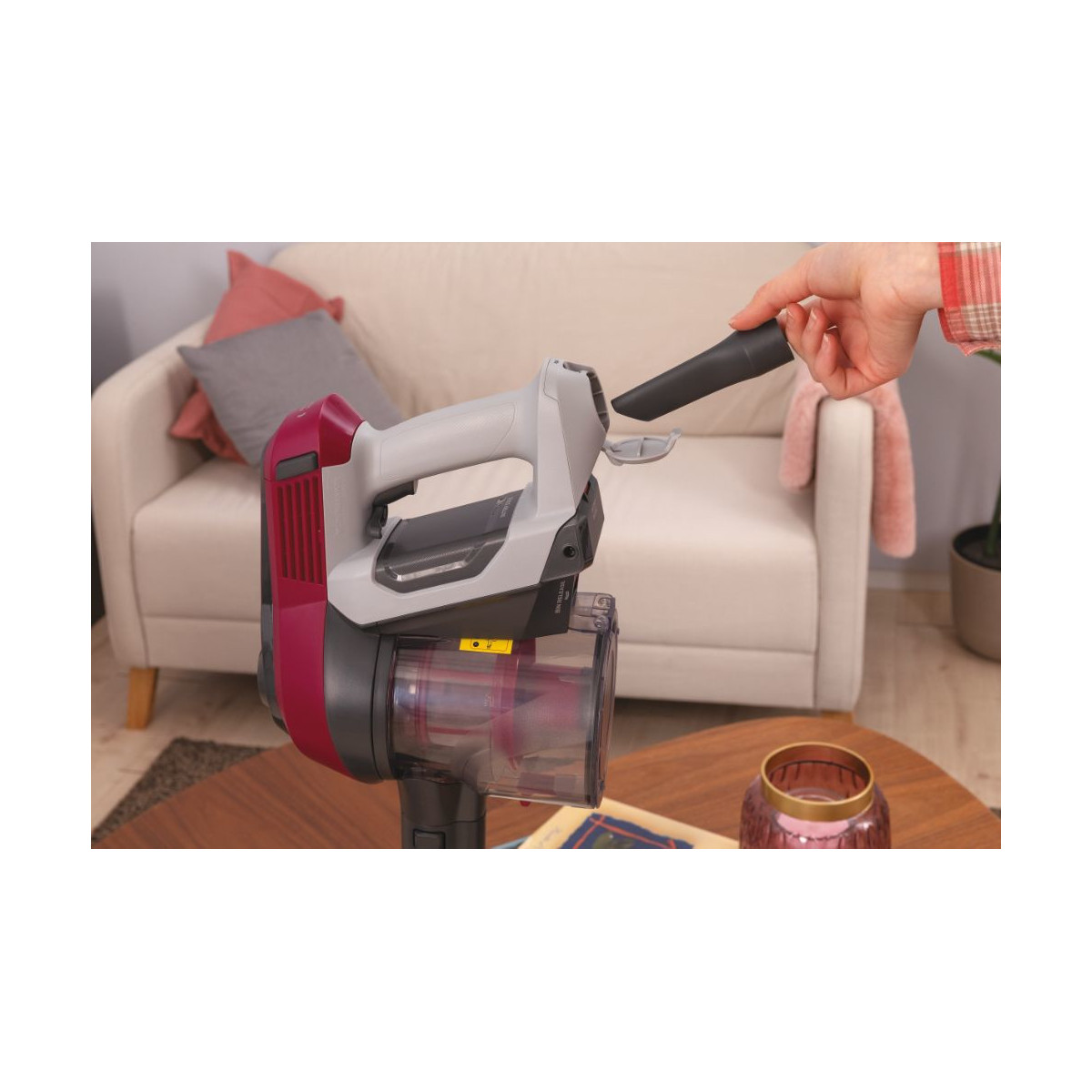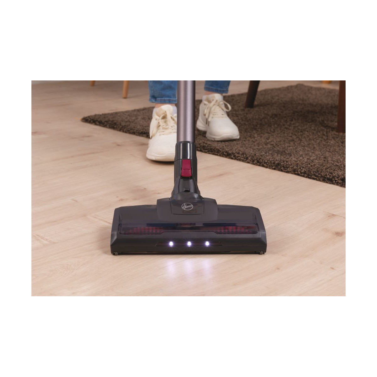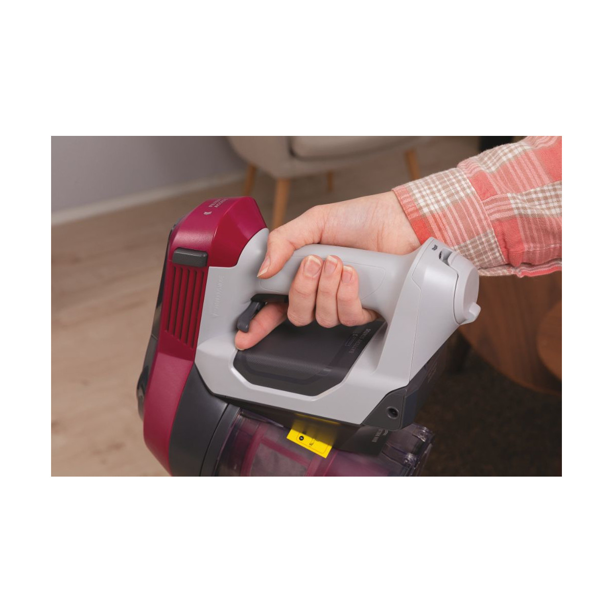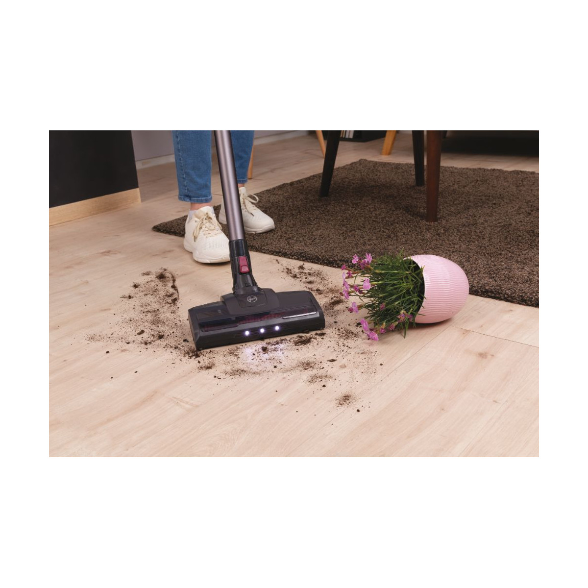 Hoover HF1 HF110P 011. Tipo di contenitore della polvere: Senza sacchetto, Colore del prodotto: Magenta, Capacità del contenitore: 0,9 L. Materiale delle ruote: Gomma. Tipo di pulizia: Secco, Sistema di filtraggio dell'aspirapolvere: Tessuto, Metodo di separazione dello sporco: Ciclonico. Indicatori LED: status. Alimentazione: Batteria, Massima potenza in entrata: 170 W, Potenza motore: 170 W