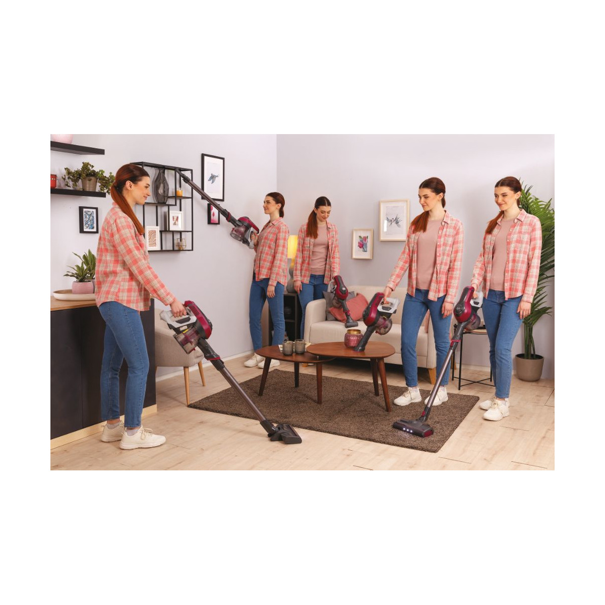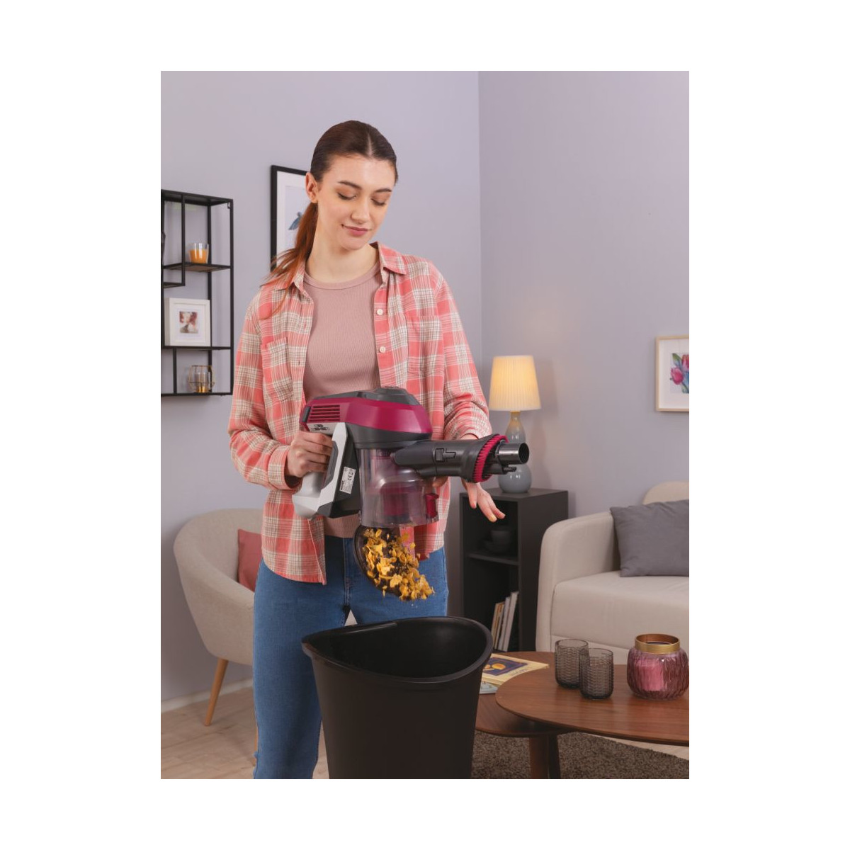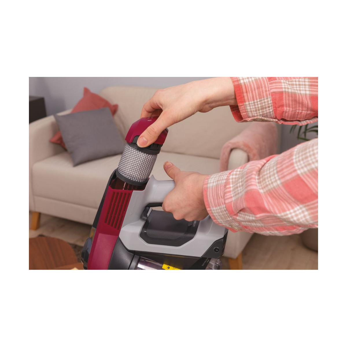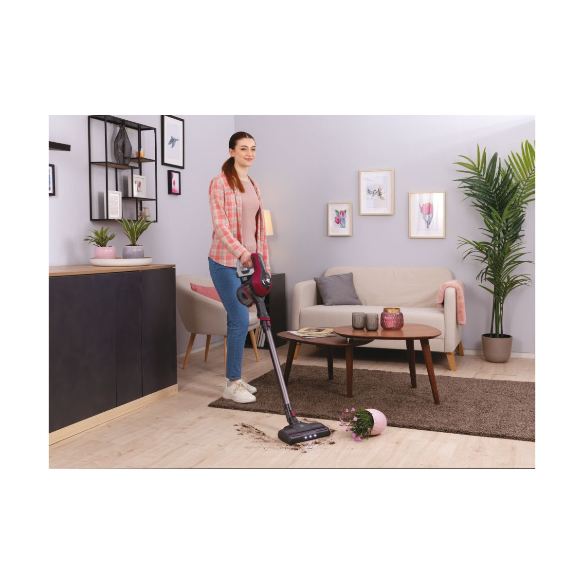 Hoover HF1 HF110P 011. Tipo di contenitore della polvere: Senza sacchetto, Colore del prodotto: Magenta, Capacità del contenitore: 0,9 L. Materiale delle ruote: Gomma. Tipo di pulizia: Secco, Sistema di filtraggio dell'aspirapolvere: Tessuto, Metodo di separazione dello sporco: Ciclonico. Indicatori LED: status. Alimentazione: Batteria, Massima potenza in entrata: 170 W, Potenza motore: 170 W