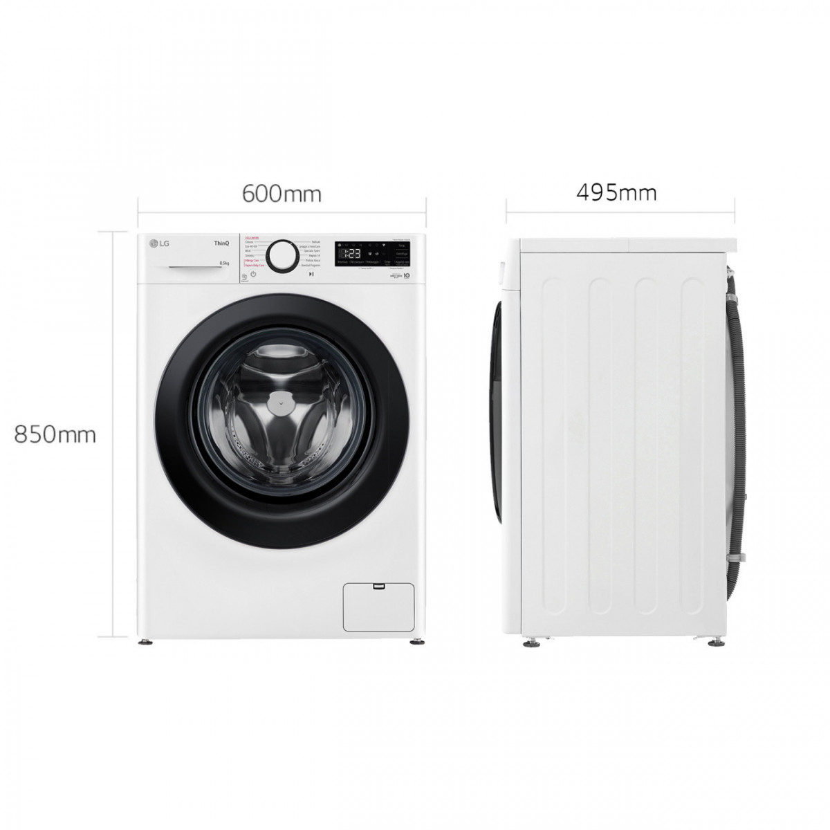 LG F2WV308S6AW Lavatrice 8,5kg AI DD, Classe A, 1200 giri, Vapore. Tipo di carica: Caricamento frontale. Capacità cestello: 8,5 kg, Classe di efficienza della centrifuga: B, Silenziosità (centrifuga): 71 dB, Velocità di centrifuga massima: 1170 Giri/min. Colore del prodotto: Bianco. Larghezza: 600 mm, Profondità: 495 mm, Altezza: 850 mm. Classe efficienza energetica: A