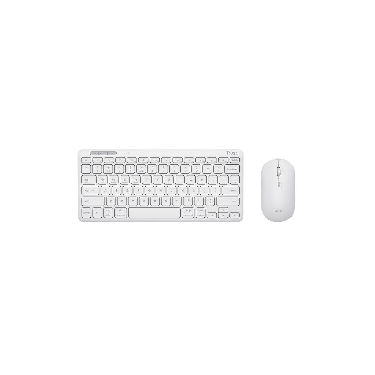 Trust Lyra. Fattore di forma tastiera: Mini. Stile tastiera: Dritto. Tecnologia di connessione: Wireless, Interfaccia dispositivo: RF senza fili + Bluetooth, Interruttore a chiave per tastiera: Tasto con meccanismo a forbici, Struttura tastiera: QWERTY, Utilizzo raccomandato: Universale. Colore del prodotto: Bianco. Mouse incluso