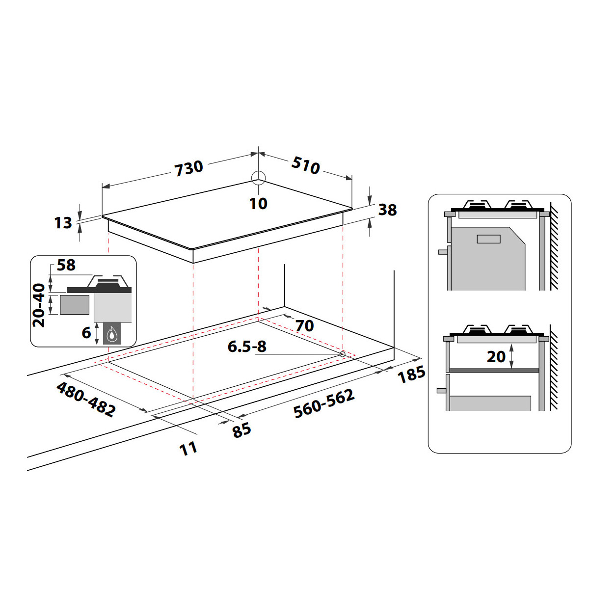 | Dimensione della larghezza del piano cottura | 75 cm |