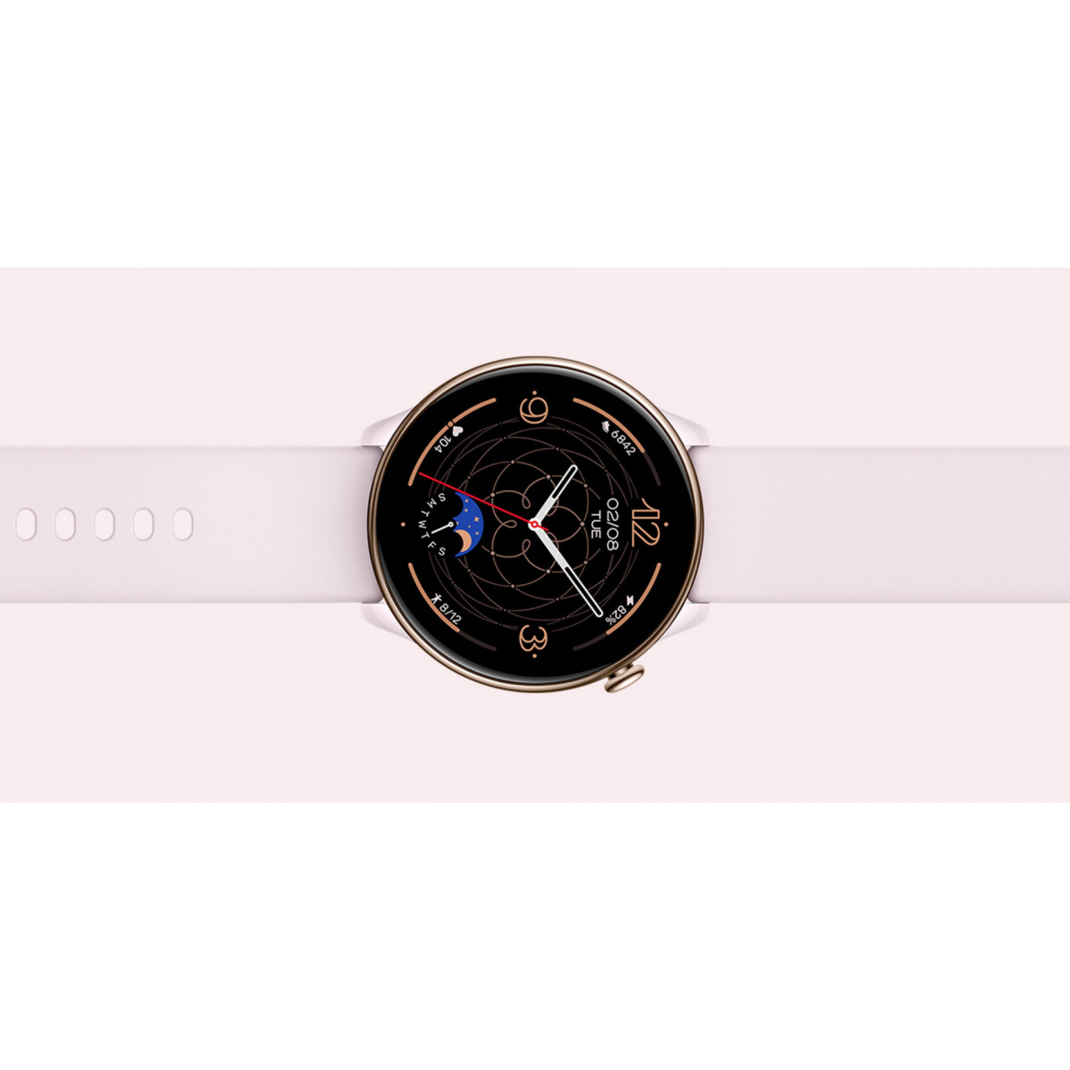 Amazfit GTR Mini. Dimensioni schermo: 3,25 cm (1.28"), Tecnologia display: AMOLED, Risoluzione del display: 416 x 416 Pixel, Touch screen. GPS (satellitare). Capacità della batteria: 280 mAh. Peso: 36,2 g. Materiale cinturino: Silicone, Colore cinturino: Rosa, Dimensione del cinturino: Taglia unica