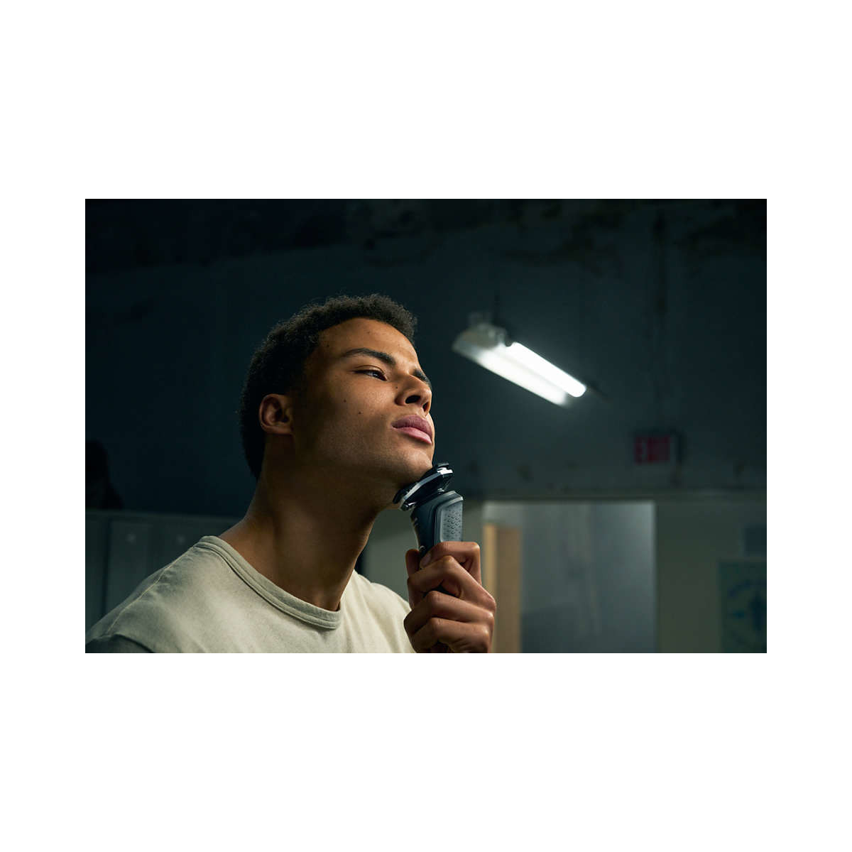 La Serie Philips 5000 offre una rasatura efficace, che da oggi è in grado di rimuovere ancora più peli ad ogni passata*. Dotato di tecnologia SkinIQ avanzata, il rasoio rileva e si adatta alla densità dei peli per un maggiore comfort sulla pelle.