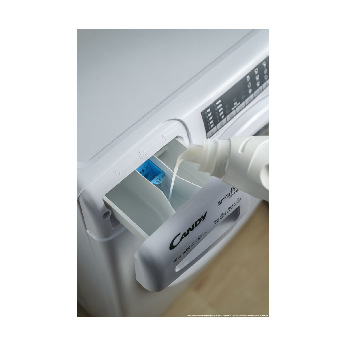 Candy Smart Pro Inverter CO 4104TWM/1-S. Tipo di carica: Caricamento frontale. Capacità cestello: 10 kg, Classe di efficienza della centrifuga: B, Silenziosità (centrifuga): 76 dB, Velocità di centrifuga massima: 1400 Giri/min. Colore del prodotto: Bianco. Larghezza: 60 mm, Profondità: 58 mm, Altezza: 850 mm. Classe efficienza energetica: A