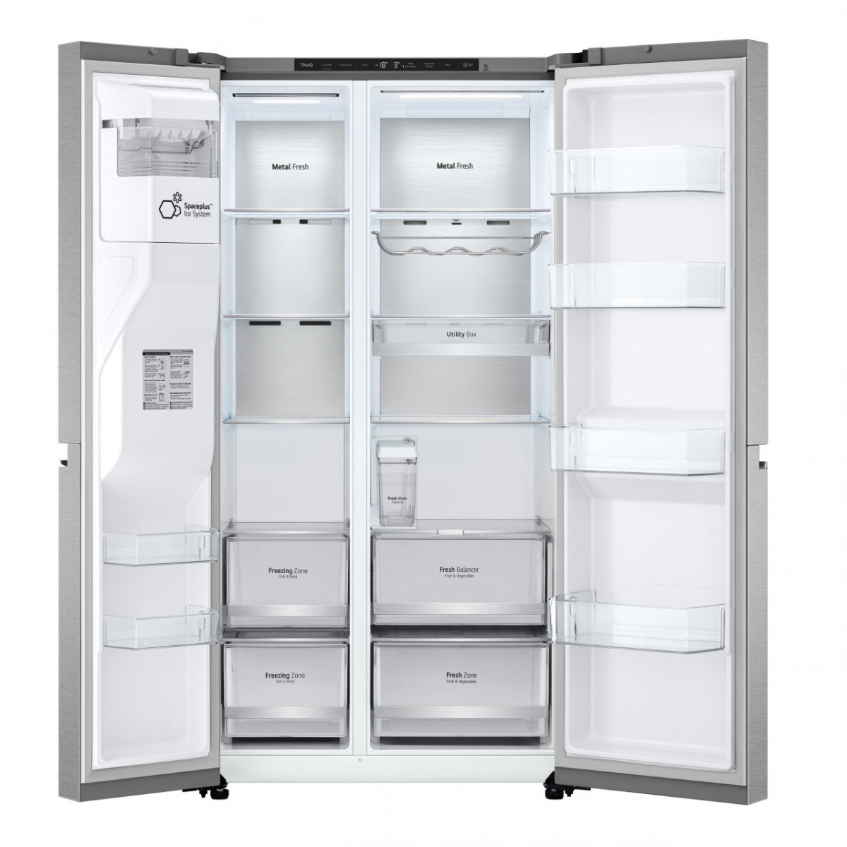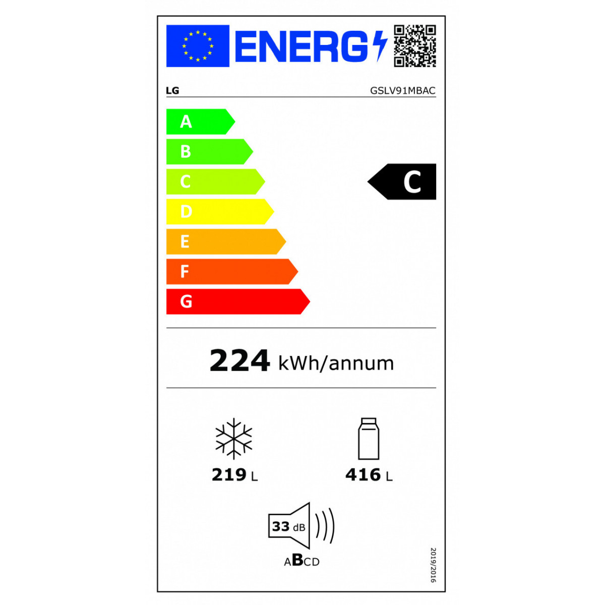LG GSLV91MBAC Frigorifero Side-by-Side, Classe C, 635L, Wi-Fi, No allaccio, UVnano, Acciaio. Posizionamento dell'apparecchio: Libera installazione, Design del prodotto: Porta americana, Colore del prodotto: Acciaio inossidabile. Capacità netta totale: 635 L, Classe climatica: T, Classe emissione rumore: B. Capacità netta frigorifero: 416 L. Capacità netta congelatore: 219 L, Posizione del congelatore: Posizionato lateralmente, Capacità di congelamento: 12 kg/24h. Classe efficienza energetica: C, Consumo energetico annuo: 224 kWh, Scala di efficienza energetica: Da A a G