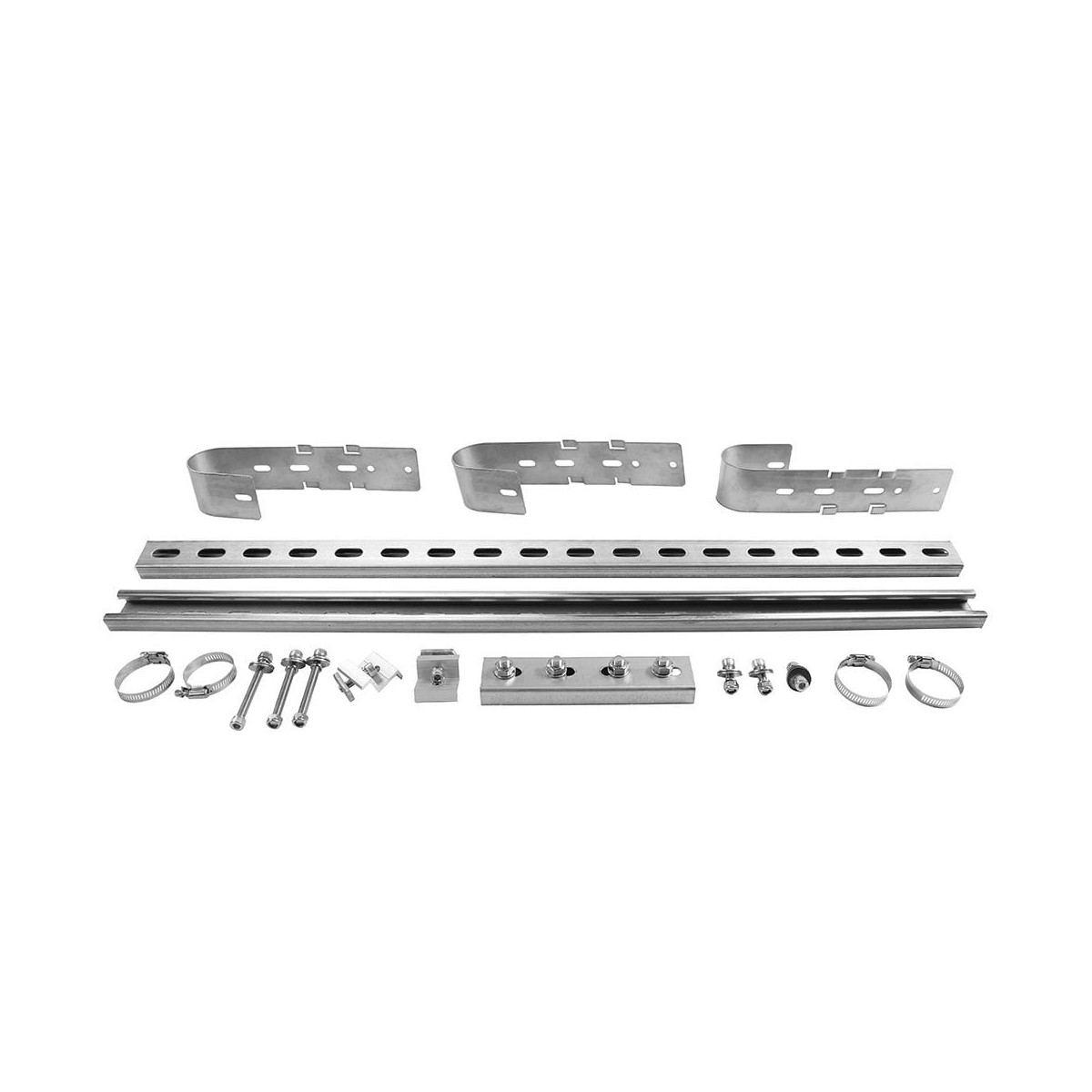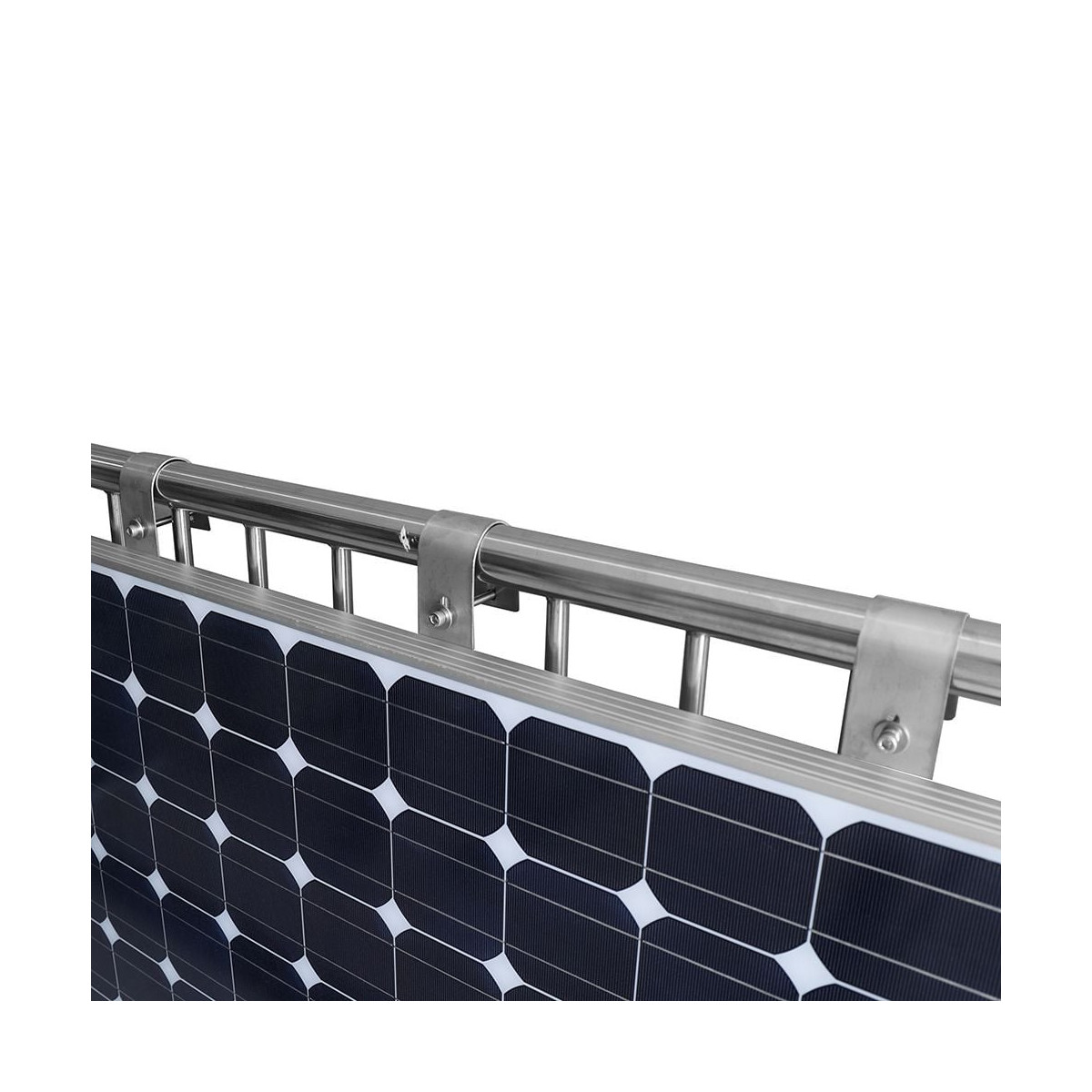 Questo set contiene tutto il necessario per fissare 1 modulo, ciascuno con una larghezza massima di 1,80 m, a una ringhiera del balcone. I materiali anticorrosivi di alta qualità in acciaio inossidabile e alluminio garantiscono un'installazione sicura e duratura.