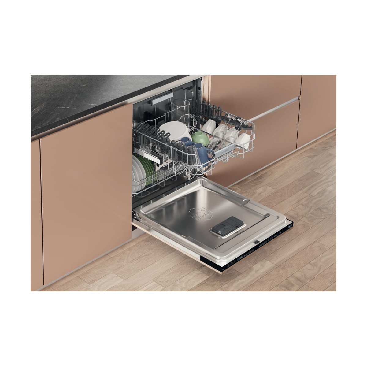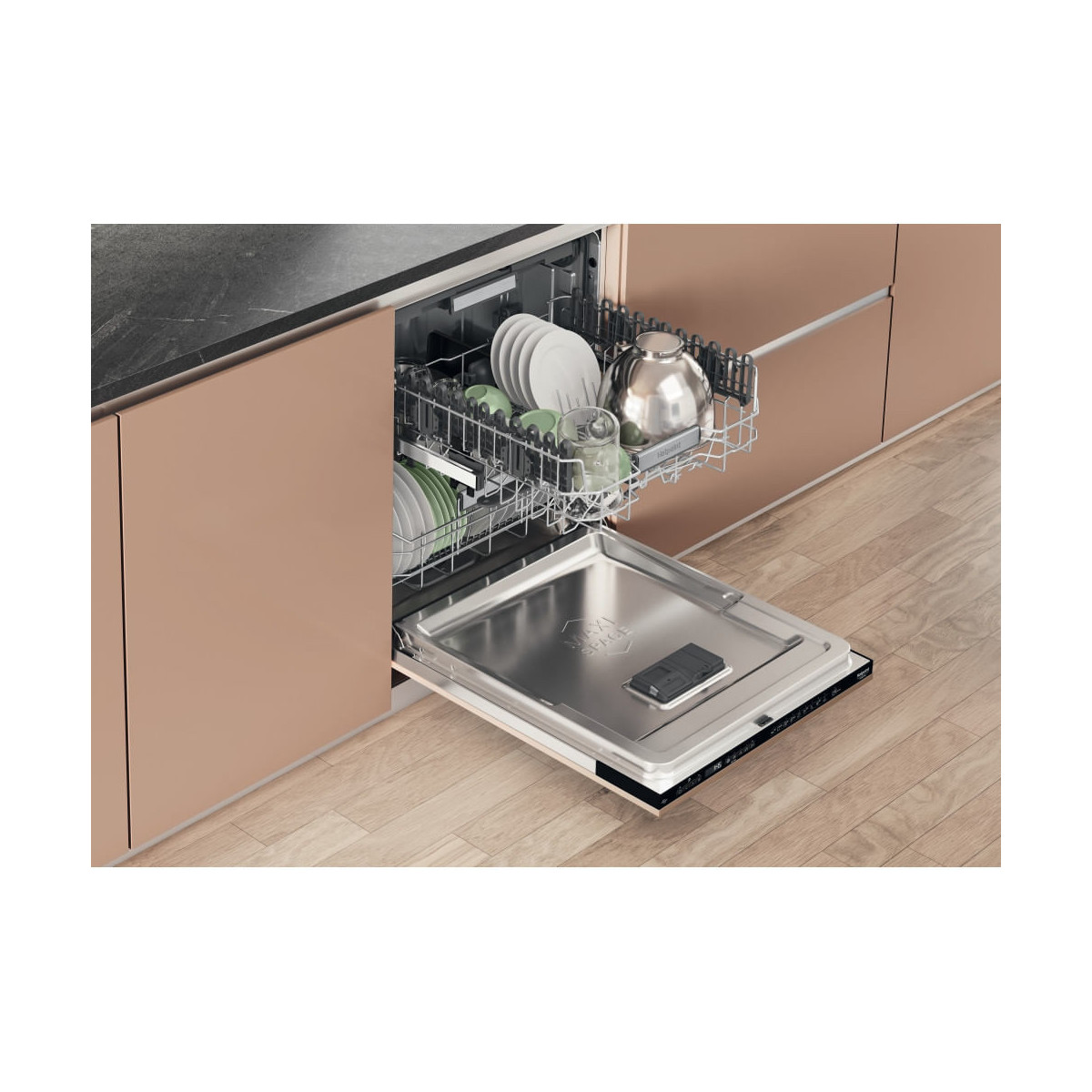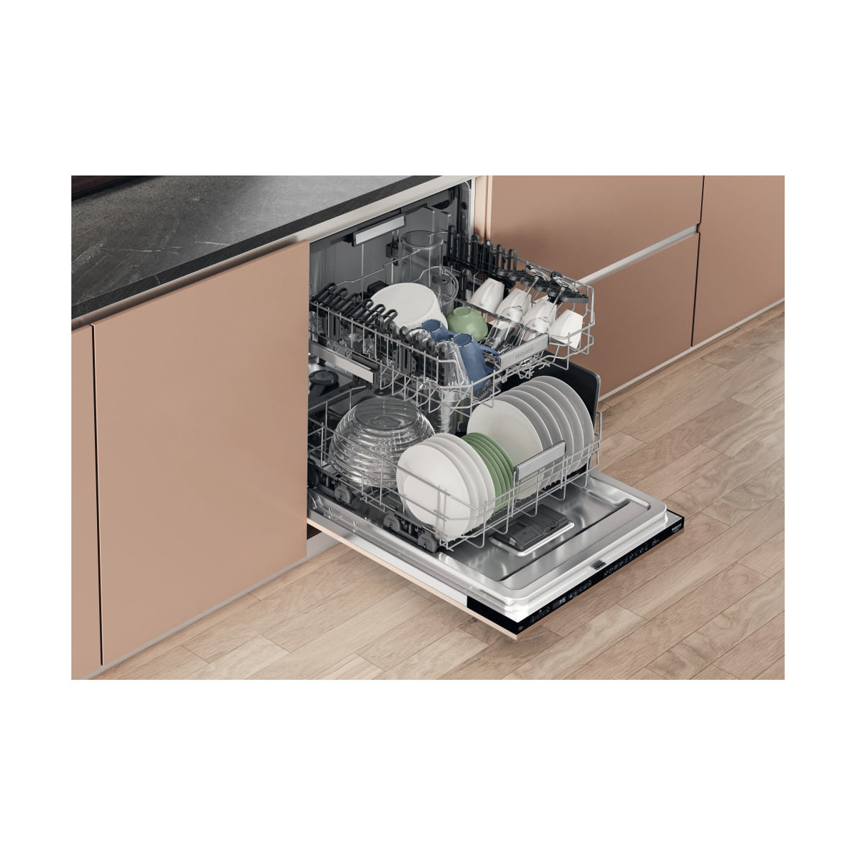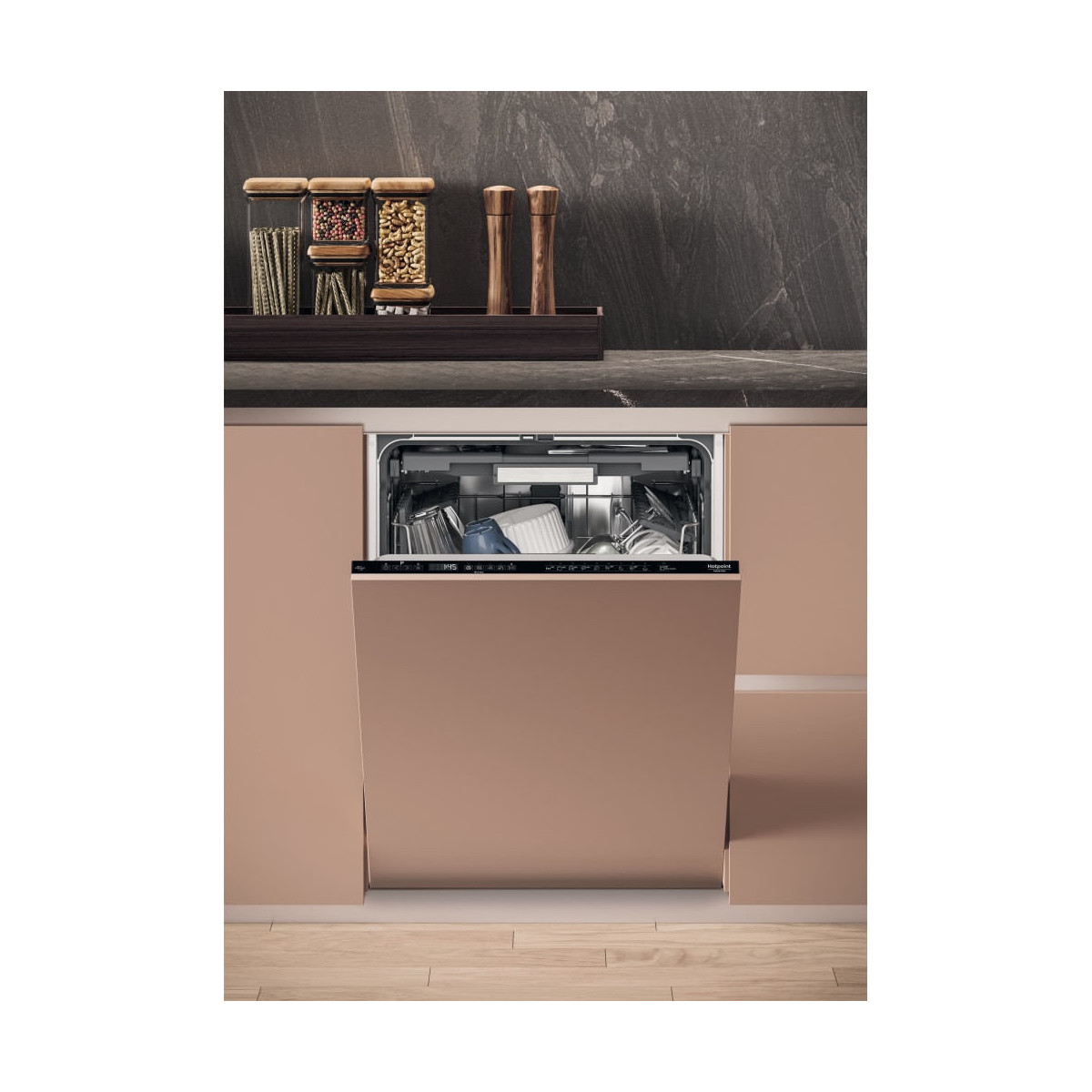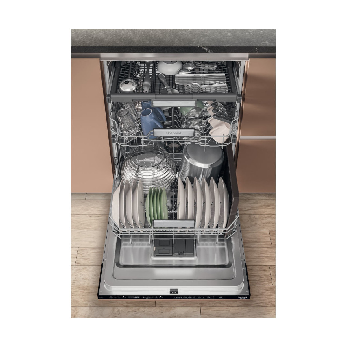 Caratteristiche di questa lavastoviglie da incasso Hotpoint: lavastoviglie con una grande capacità di carico con un gran numero di coperti disponibile. Classe di efficienza energetica C. Eccezionale riduzione del consumo di acqua. Colore nero. Tecnologia innovativa che garantisce un funzionamento super silezioso, per un elettrodomestico senza rumori.