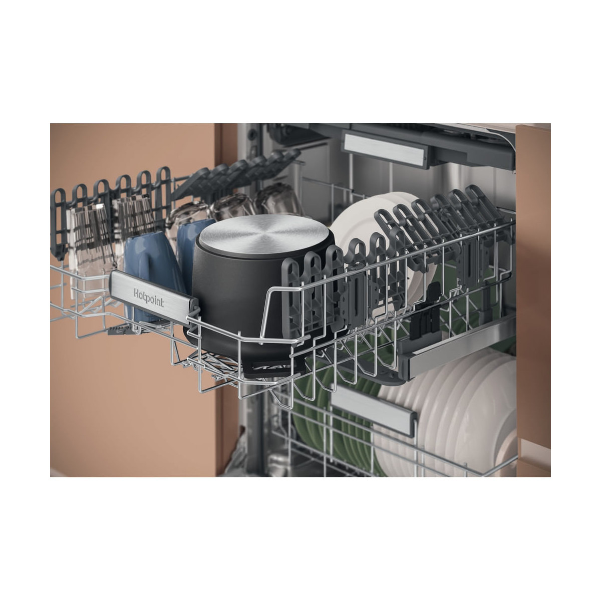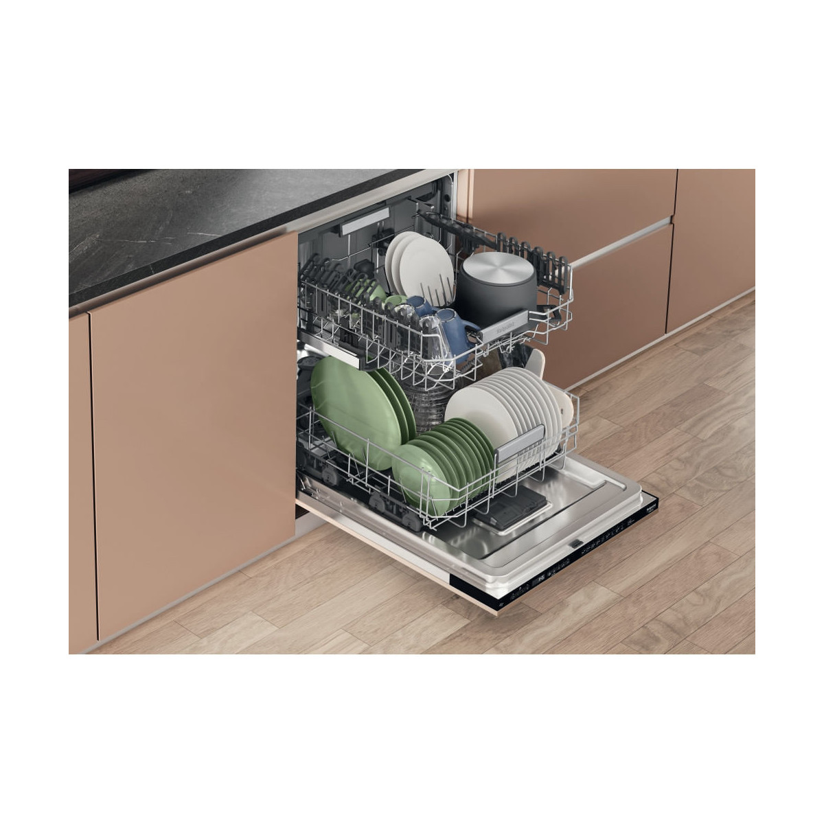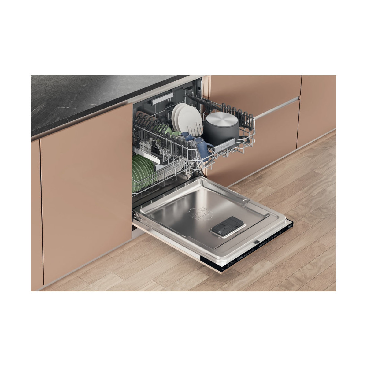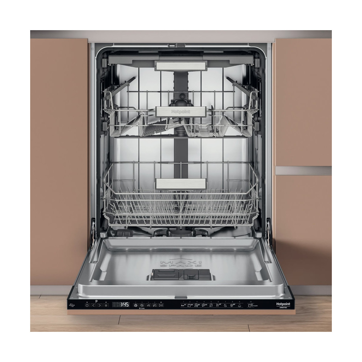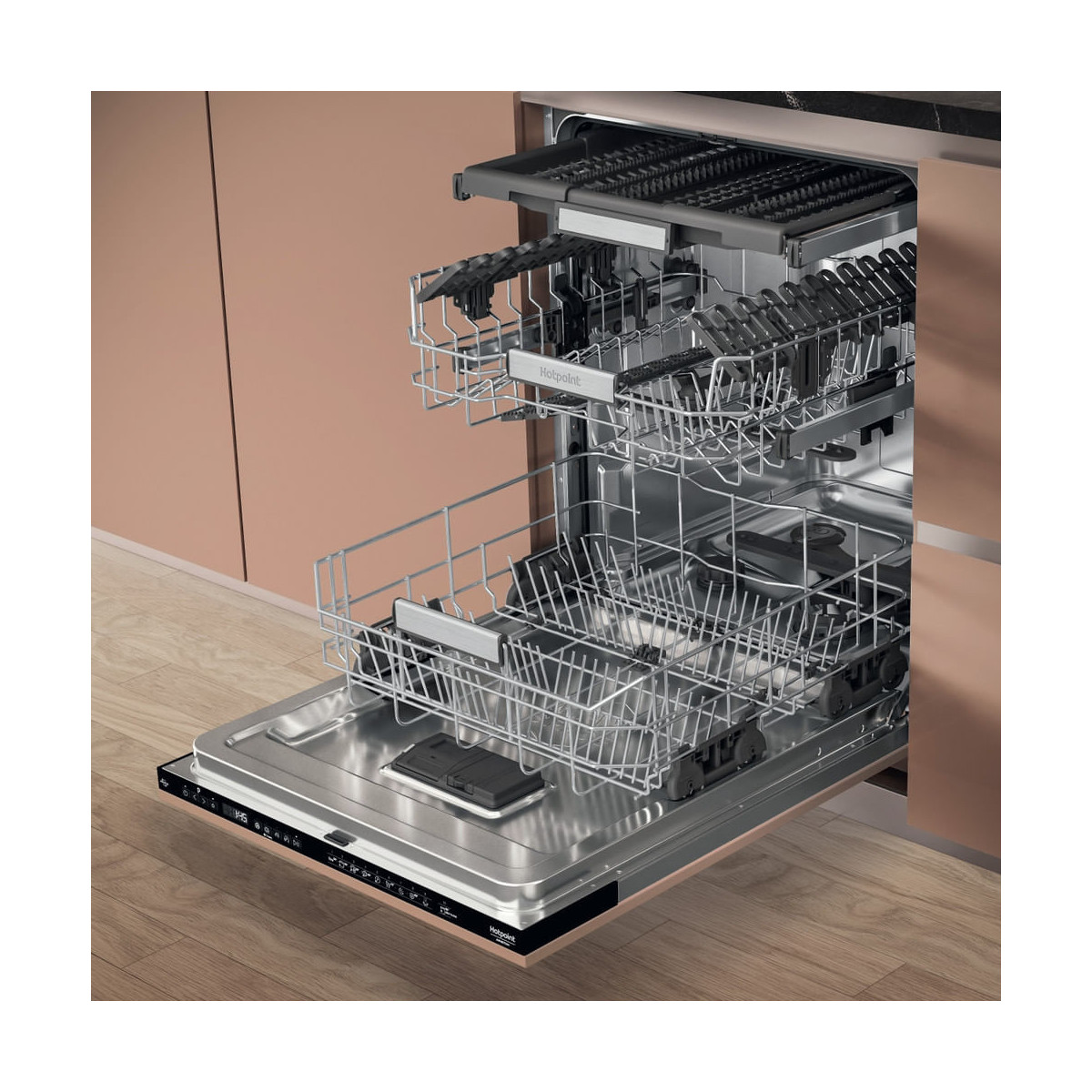 Caratteristiche di questa lavastoviglie da incasso Hotpoint: lavastoviglie con una grande capacità di carico con un gran numero di coperti disponibile. Classe di efficienza energetica C. Eccezionale riduzione del consumo di acqua. Colore nero. Tecnologia innovativa che garantisce un funzionamento super silezioso, per un elettrodomestico senza rumori.
