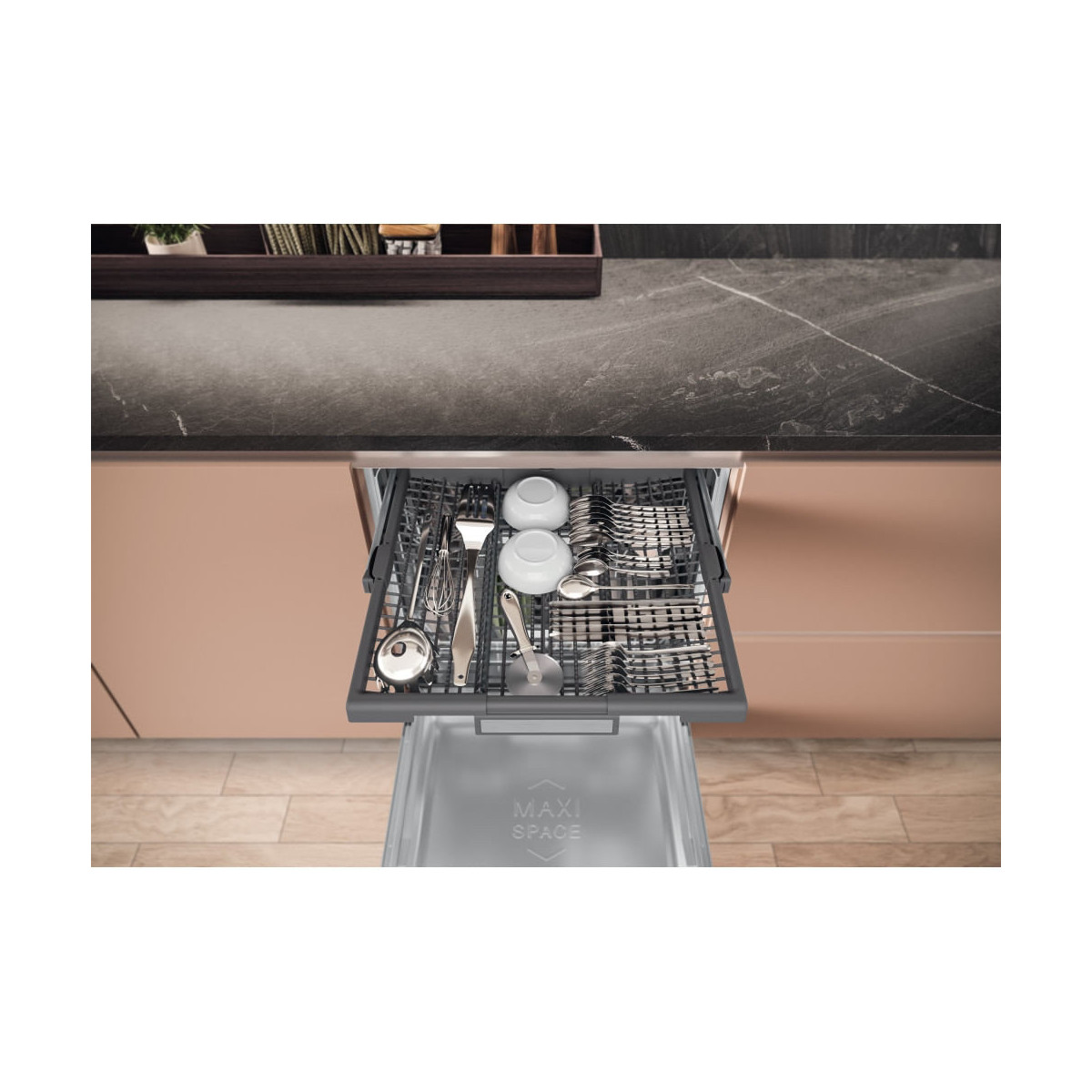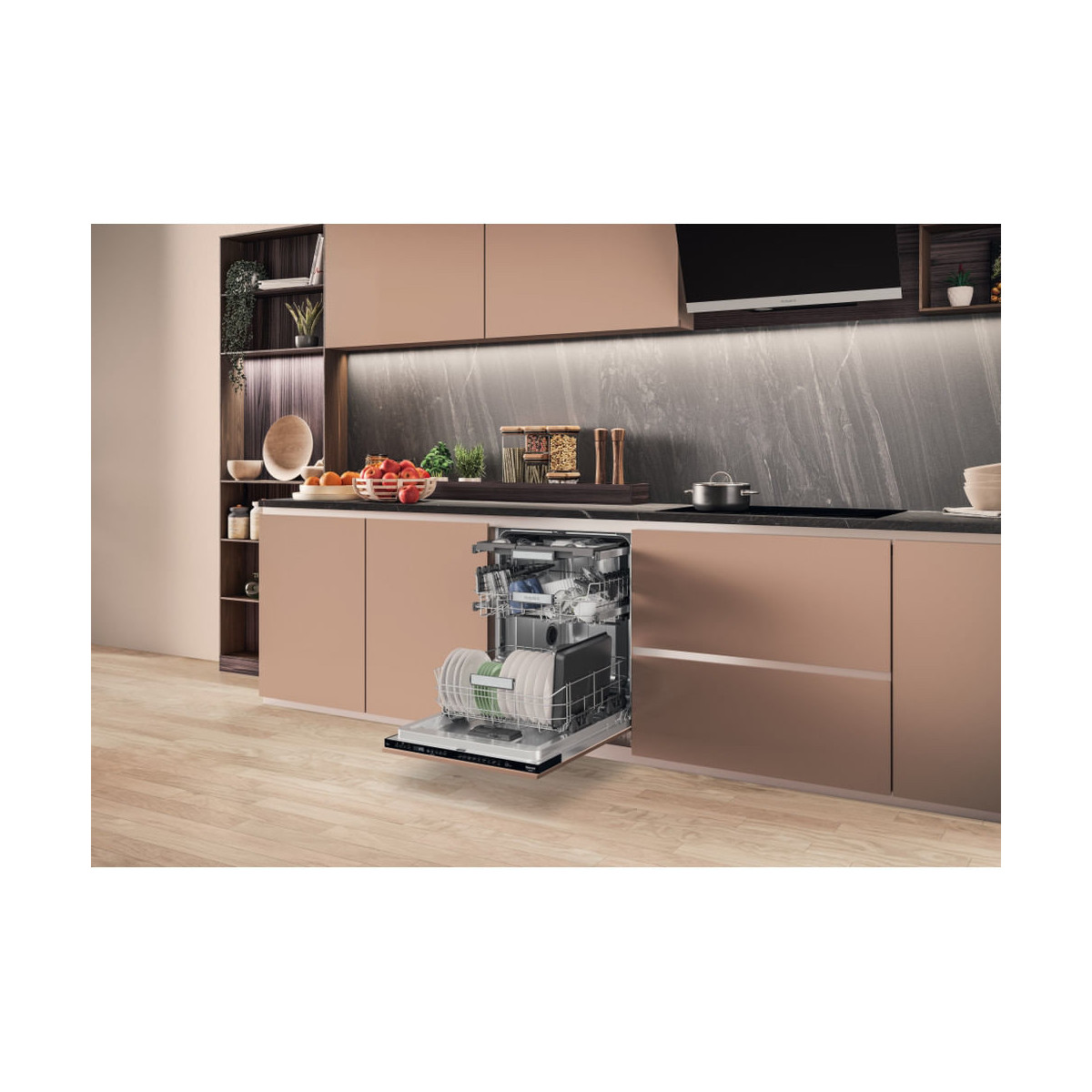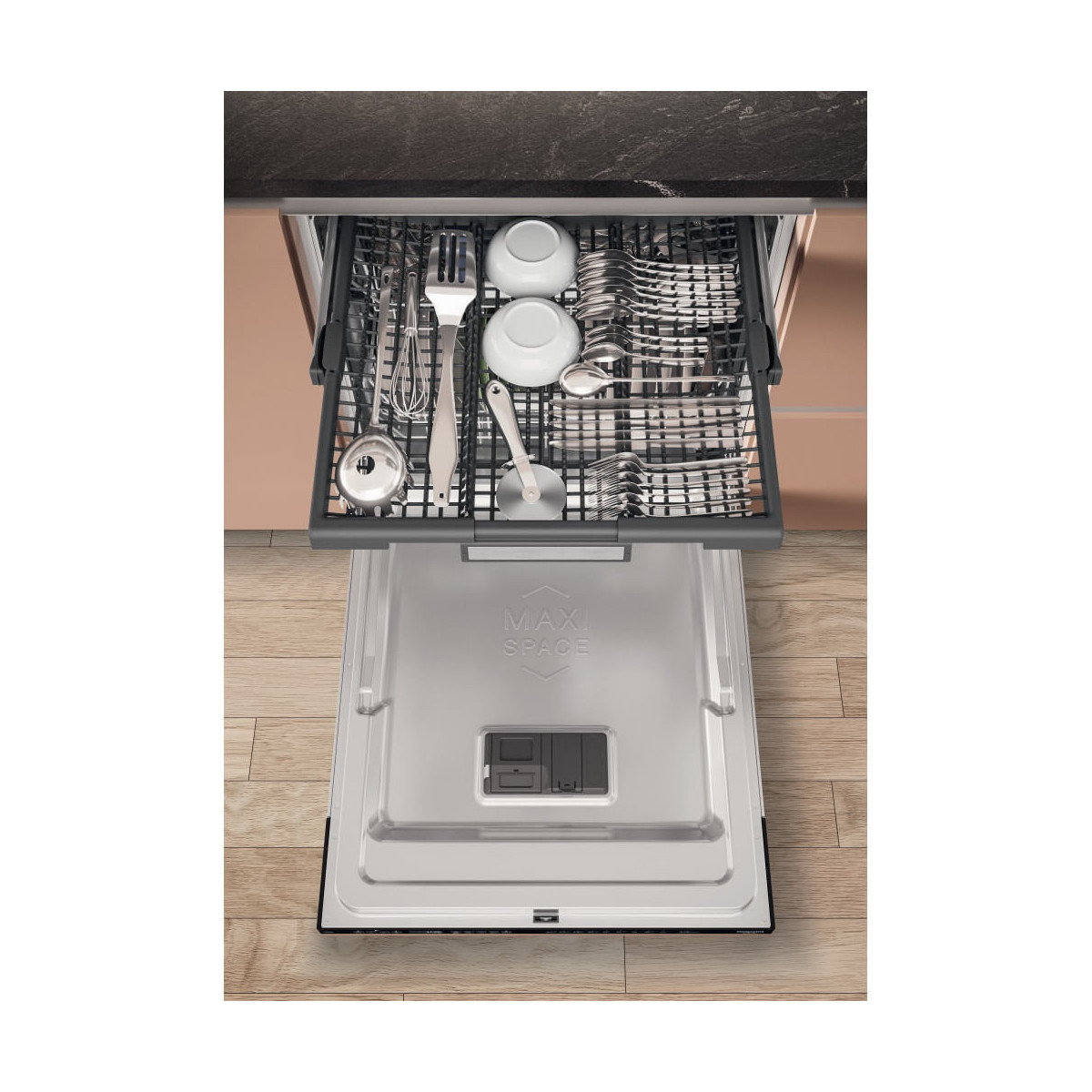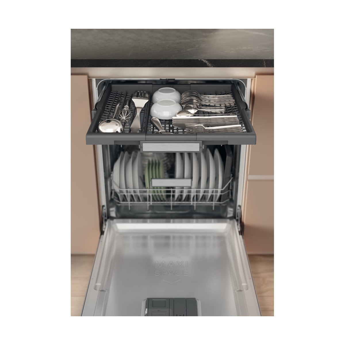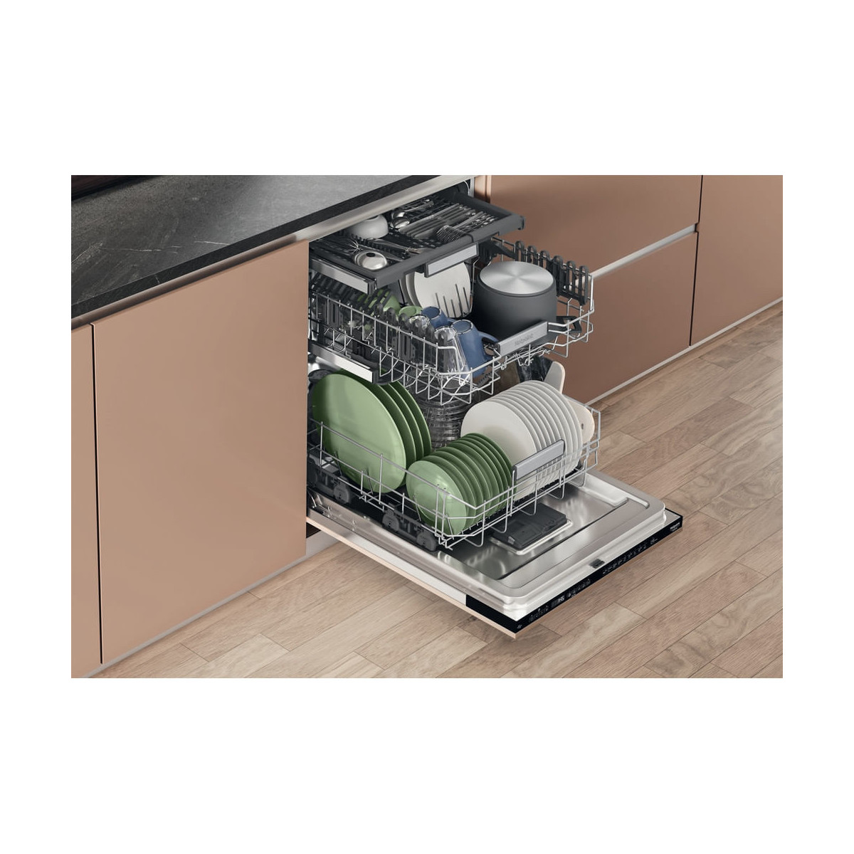 Caratteristiche di questa lavastoviglie da incasso Hotpoint: lavastoviglie con una grande capacità di carico con un gran numero di coperti disponibile. Classe di efficienza energetica C. Eccezionale riduzione del consumo di acqua. Colore nero. Tecnologia innovativa che garantisce un funzionamento super silezioso, per un elettrodomestico senza rumori.