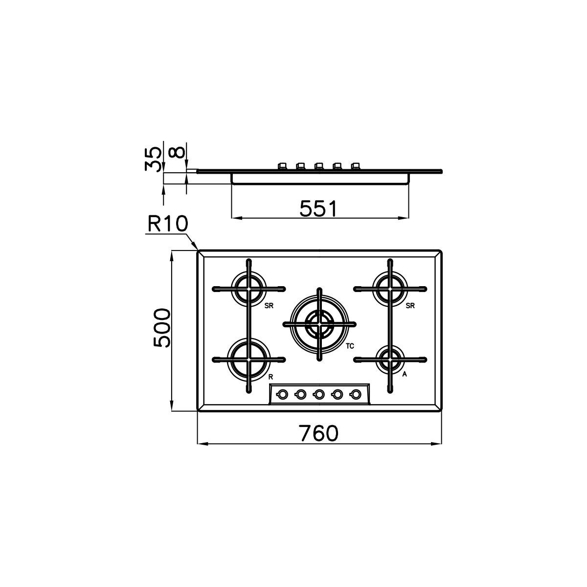- Dimensione foro incasso: 560x480 mm;