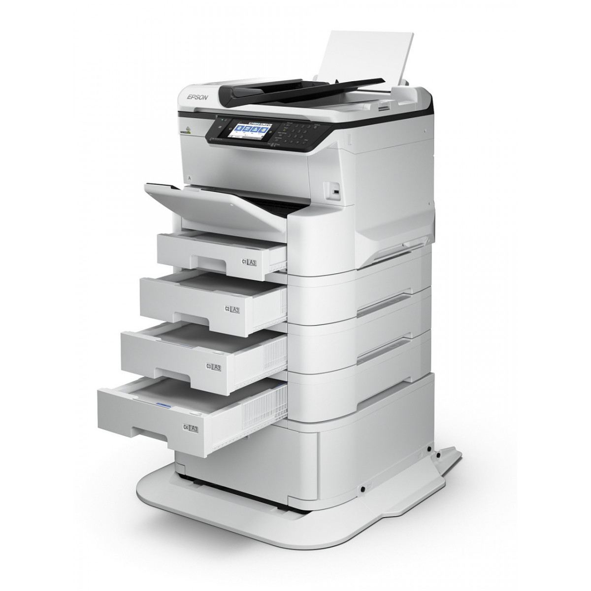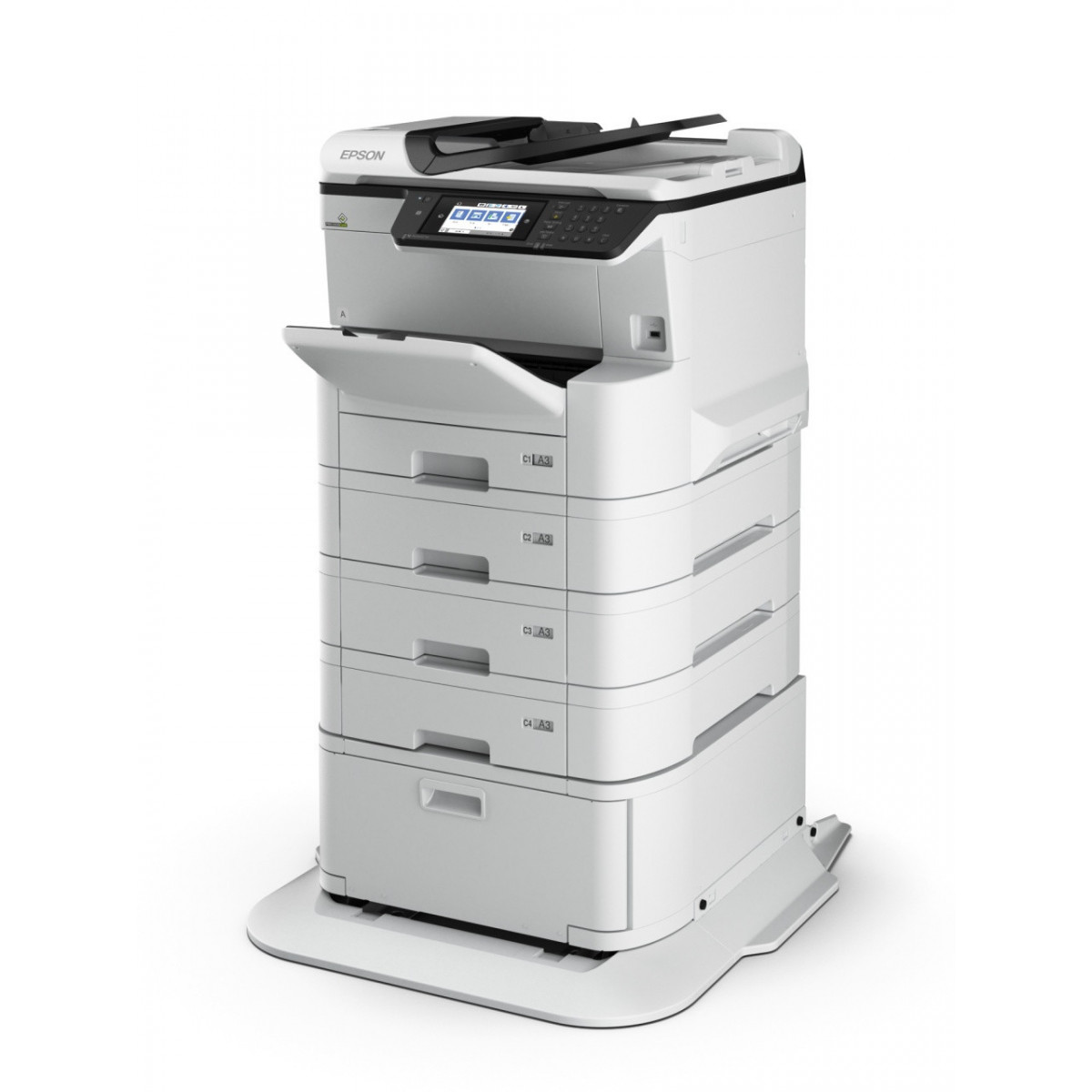 Epson WorkForce Pro WF-C8690D3TWFC. Tecnologia di stampa: Getto termico d'inchiostro, Stampa: Stampa a colori, Risoluzione massima: 4800 x 1200 DPI. Copia: Copia a colori, Risoluzione di copia massima: 600 x 1200 DPI. Scansione: Scansione a colori, Risoluzione di scansione ottica: 1200 x 2400 DPI. Fax: Fax a colori. Massimo formato carta serie ISO A: A3+. Wi-Fi. Stampa diretta. Colore del prodotto: Bianco
