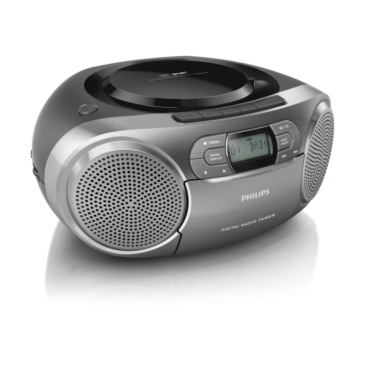 Philips AZB600/12. Tipo sintonizzatore: Digitale, Bande del sintonizzatore: DAB,DAB+,FM. Tipi di dischi supportati: CD,CD-R,CD-RW, Modalità di riproduzione: Fast backward, Avanzamento rapido, Next, Precedente, Ripeti, Casuale. Potenza in uscita (RMS): 2 W, Diametro dell'unità di subwoofer (imperiale): 7,62 cm (3"). Tipo di display: LCD. Colore del prodotto: Grigio, Controllo del volume: Manopola