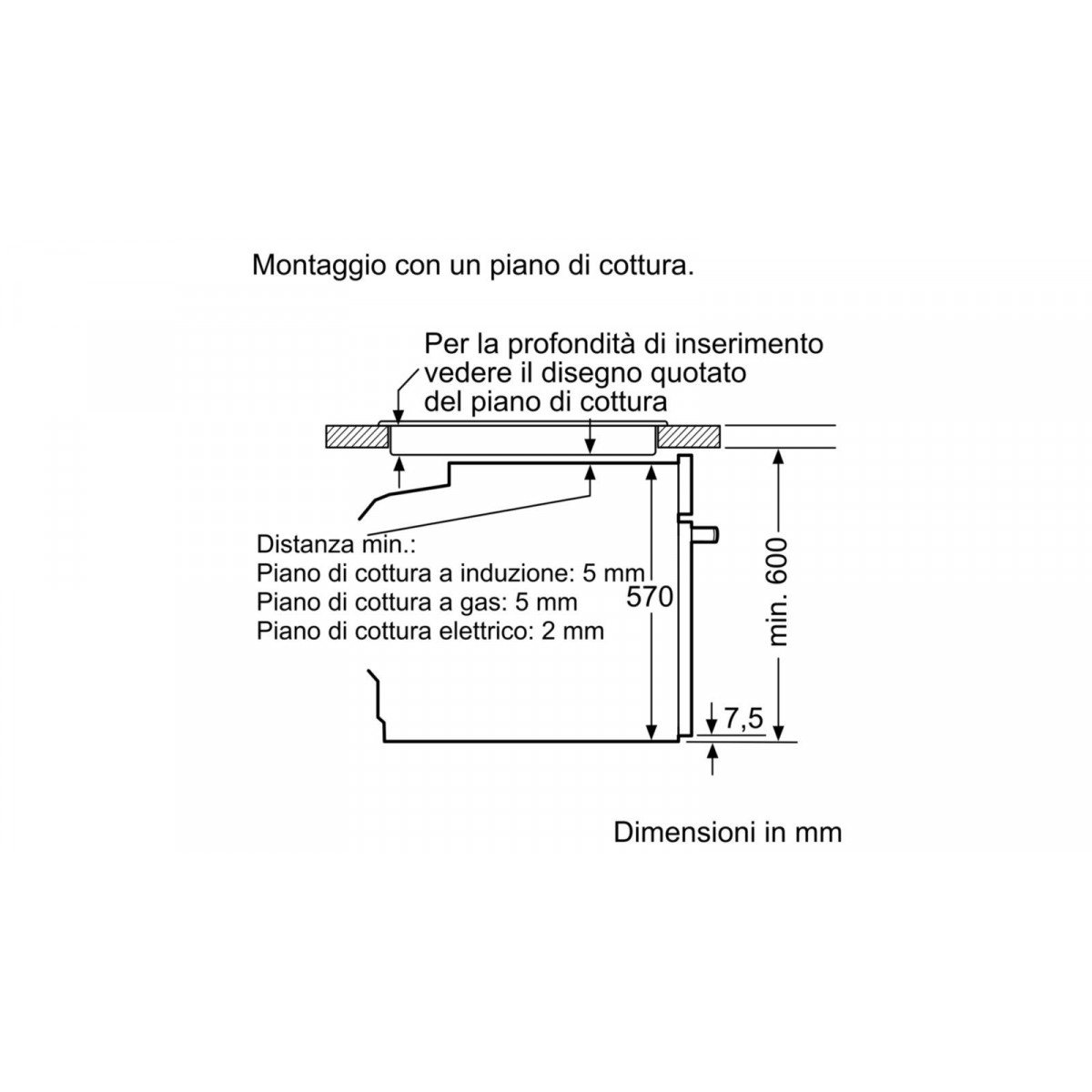 Bosch Serie 4 HBA374BR0J. Dimensione del forno: Media, Tipo di forno: Forno elettrico, Capacità interna forno totale: 71 L. Colore del prodotto: Acciaio inossidabile, Tipo di controllo: Manopola, Touch, Posizione di controllo: Frontale. Classe efficienza energetica: A, Consumo energetico (convenzionale): 0,99 kWh, Consumo energetico (convezione forzata): 0,81 kWh. Tipo di lampada: Alogena. Larghezza: 594 mm, Profondità: 548 mm, Altezza: 595 mm