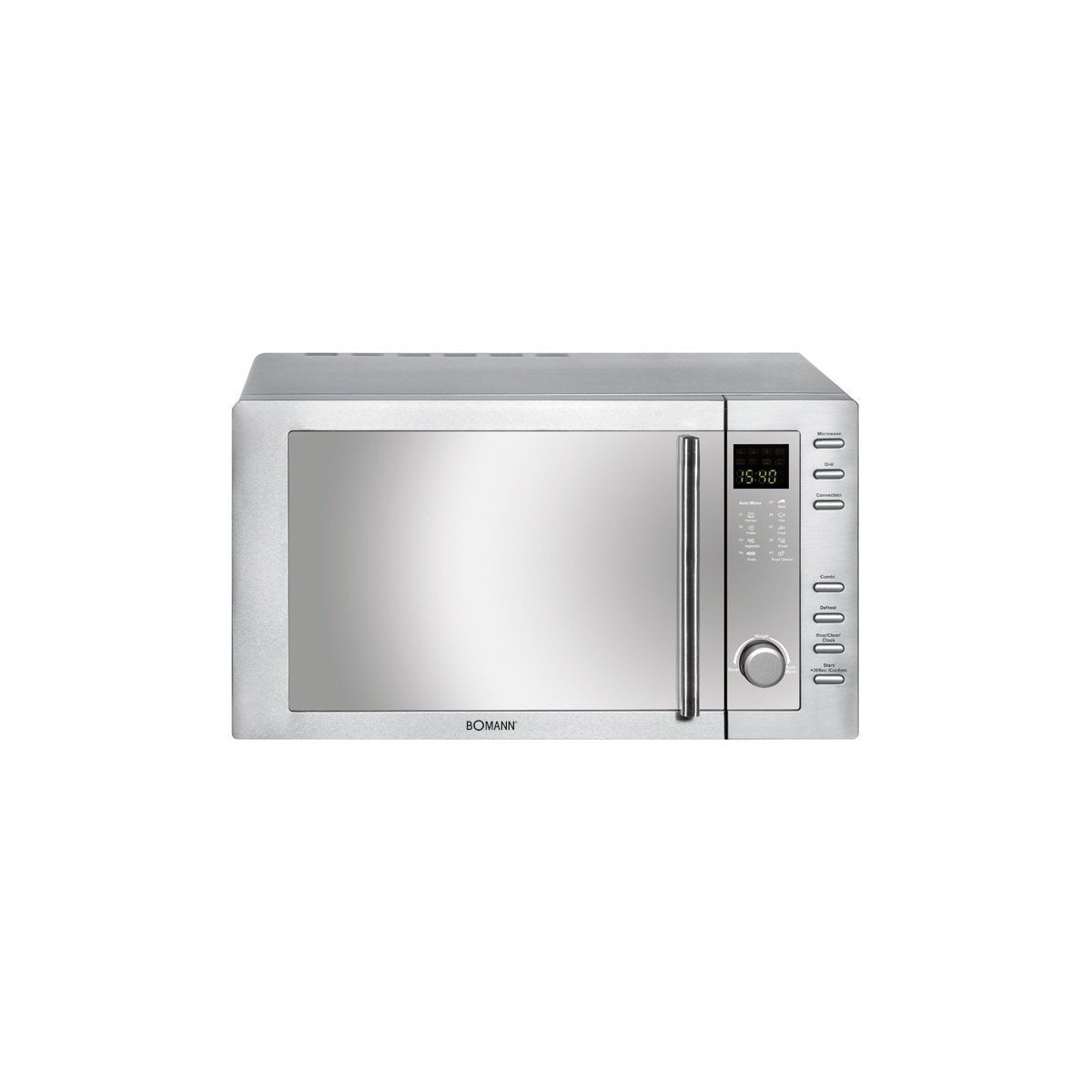 Bomann MWG 2281 H CB - Microonde con Grill, 23 Litri, 800 W, Acciaio Inossidabile