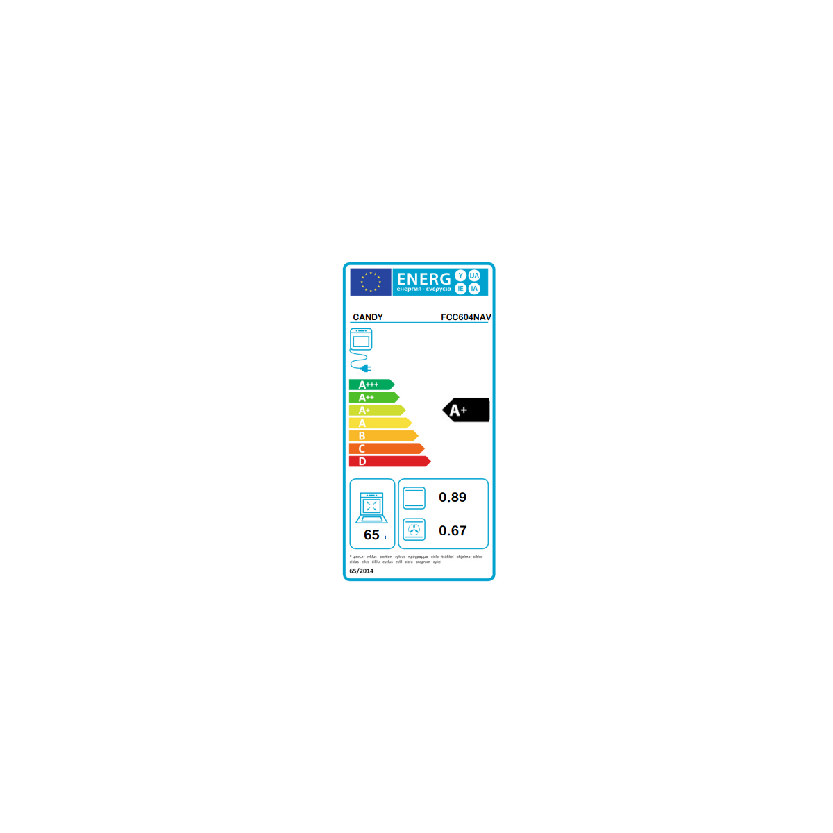 Candy Classic FCC604NAV. Dimensione del forno: Media, Tipo di forno: Forno elettrico, Capacità interna forno totale: 65 L. Posizionamento dell'apparecchio: Da incasso, Colore del prodotto: Avena, Tipo di controllo: Manopola. Tipo di timer: Meccanico. Classe efficienza energetica: A+, Consumo energetico (convenzionale): 0,89 kWh, Consumo energetico (convezione forzata): 0,67 kWh. Tipo di lampada: LED