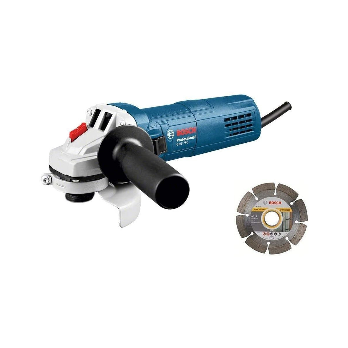 Bosch GWS 750 - Smerigliatrice Angolare, 750 W, Ø115 mm, Impugnatura Supplementare, Restart Protection con Disco Diamantato