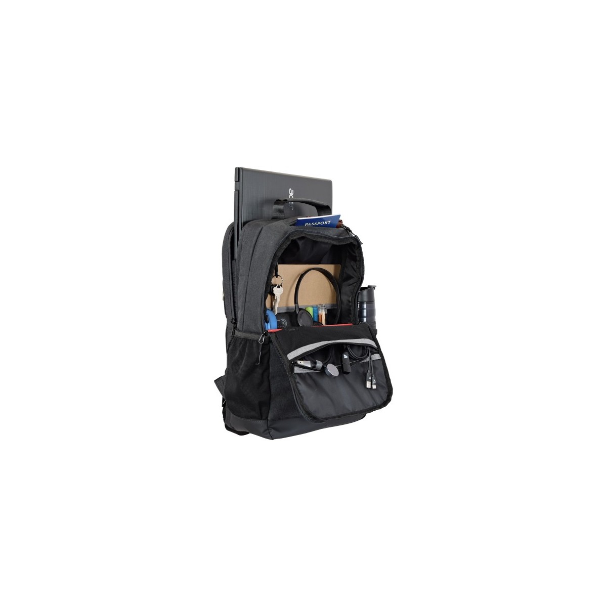 Lo zaino Slim per PC portatile da 14" è elegante, resistente e realizzato con materiali resistenti agli agenti atmosferici ed ecosostenibili. Ha uno scomparto imbottito per il PC portatile per garantire che il dispositivo sia sempre al sicuro. Il retro imbottito lo rende estremamente comodo da trasportare per tutta la giornata. Lo zaino stile Slim ha tre scomparti aperti con zip: uno per libri o abiti, un organizer/workstation e lo scomparto esterno principale di facile accesso per avere a portata di mano tutto quello che serve più spesso. Lo zaino è dotato anche di due portabottiglie per avere sempre le mani libere mentre ti muovi