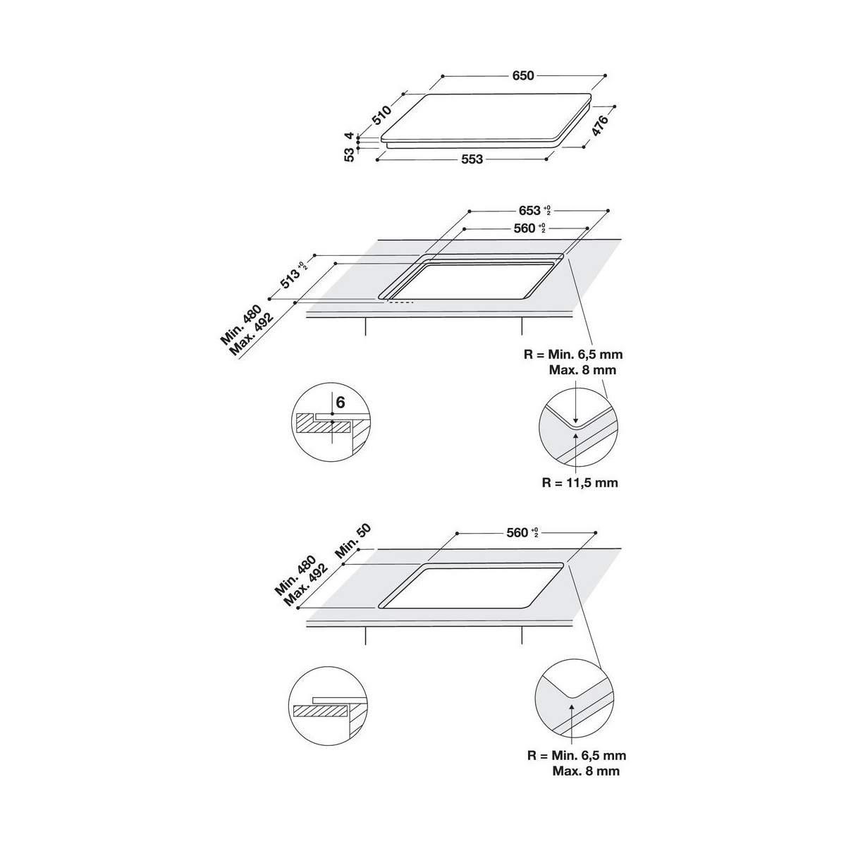 | Forma della zona cottura/del fornello regolare | Rettangolare |