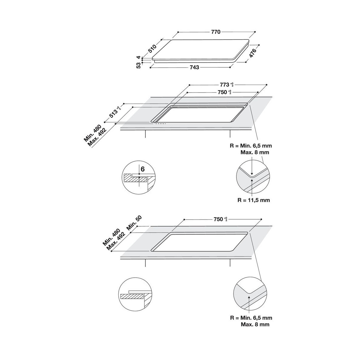 Hotpoint ACPH 778 C/NE. Colore del prodotto: Nero, Posizionamento dell'apparecchio: Da incasso, Tipo di piano cottura: A induzione. Tipo di controllo: Touch, Posizione di controllo: Frontale superiore, Tipo di timer: Digitale. Potenza aggregata (elettrica): 7400 W, Corrente: 32,2 A, Tensione di ingresso AC: 230 V. Larghezza: 770 mm, Profondità: 510 mm, Altezza: 54 mm