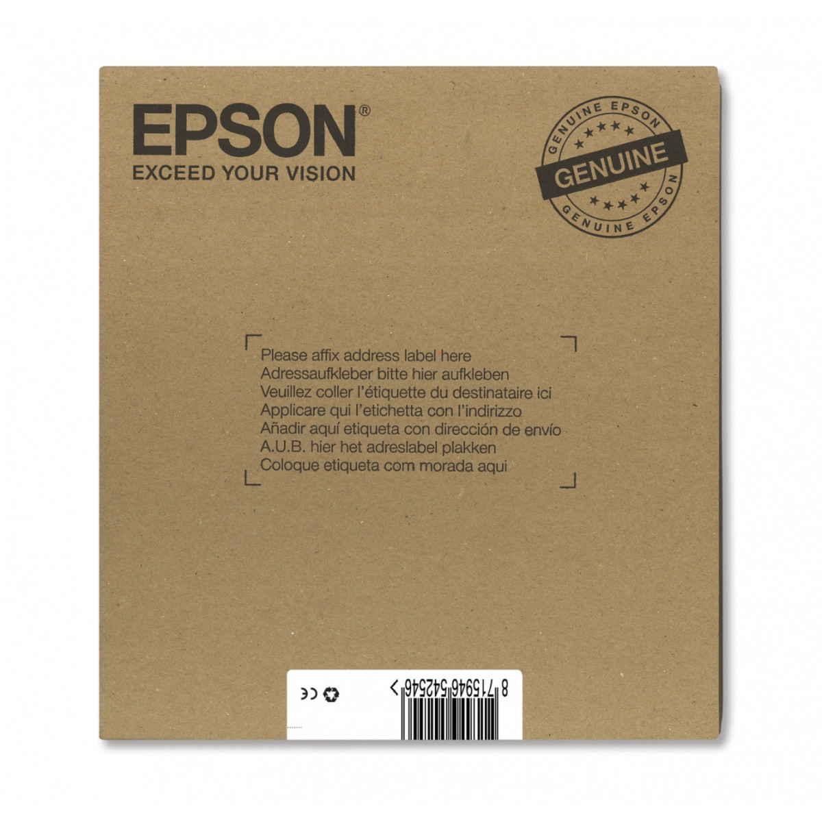 Questo set completo comprende tutte e quattro le singole cartucce: ciano, magenta, giallo e nero, per stampe con finitura lucida resistenti all'acqua e di lunga durata praticamente su ogni tipo di carta. Realizzato con un cartone riciclabile e leggero di colore marrone, il nuovo Epson EasyMail Packaging è progettato per garantire la sicurezza del contenuto in un imballo dalle dimensioni ridotte adatto alla maggior parte delle caselle della posta in Europa. Il semplice sigillo di apertura a strappo consente di risparmiare tempo e fatica. Ogni prodotto è facilmente identificabile grazie all'immagine presente sull'etichetta.