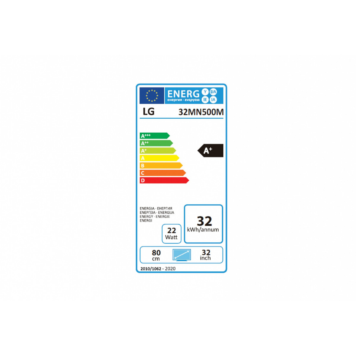 LG 32MN500M-B. Dimensioni schermo: 80 cm (31.5"), Risoluzione del display: 1920 x 1080 Pixel, Tipologia HD: Full HD, Tecnologia display: LCD, Tempo di risposta: 5 ms, Rapporto d'aspetto nativo: 16:9, Angolo di visualizzazione (orizzontale): 178°, Angolo di visualizzazione (verticale): 178°. Montaggio standard VESA. Colore del prodotto: Nero